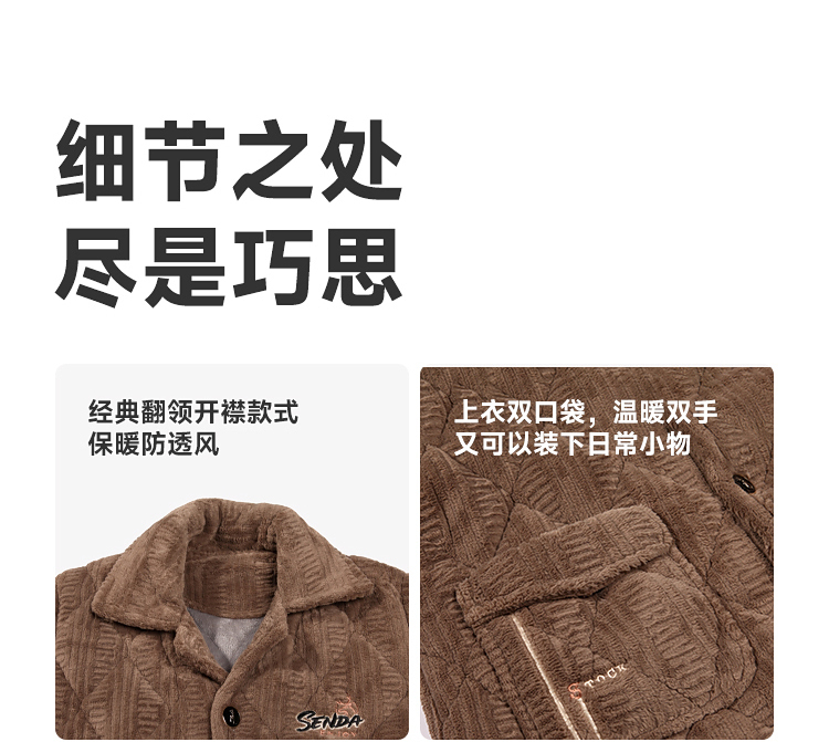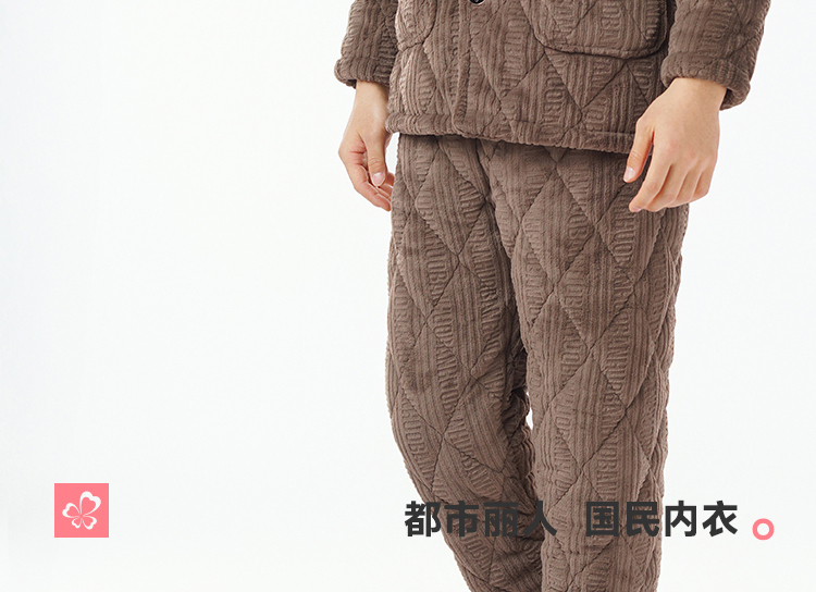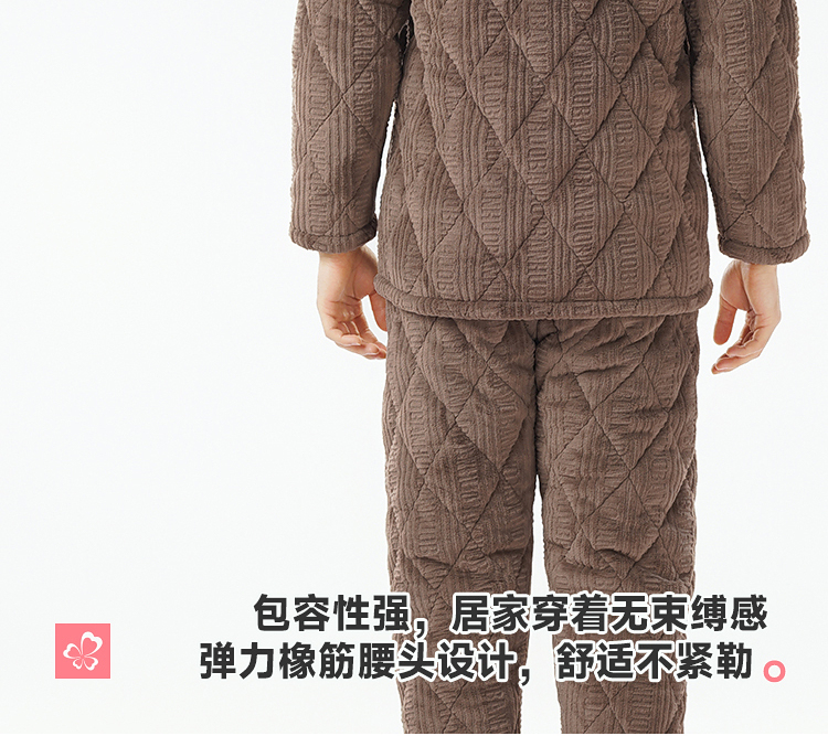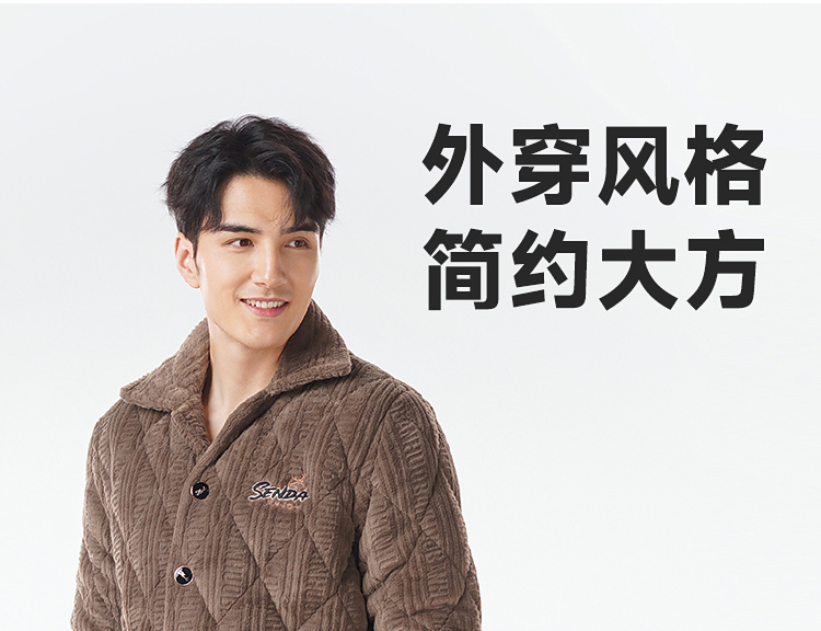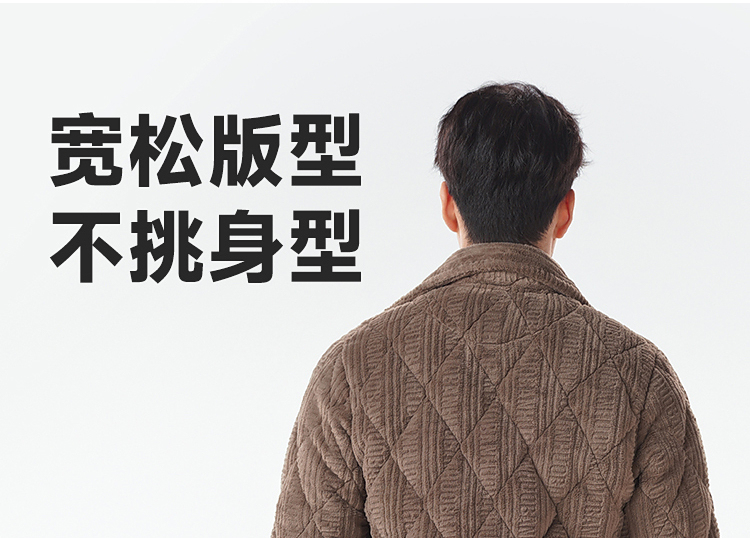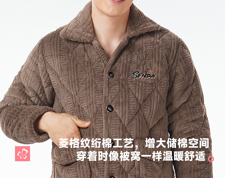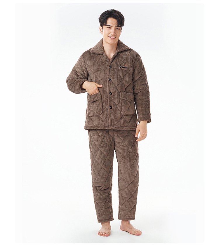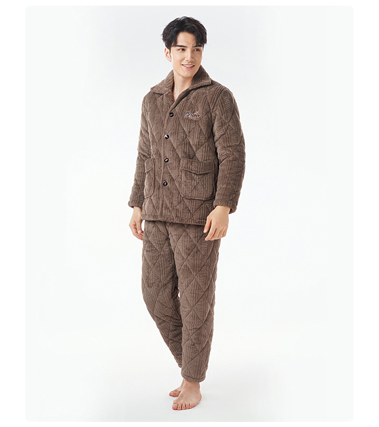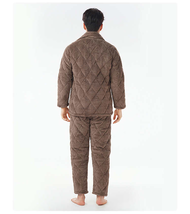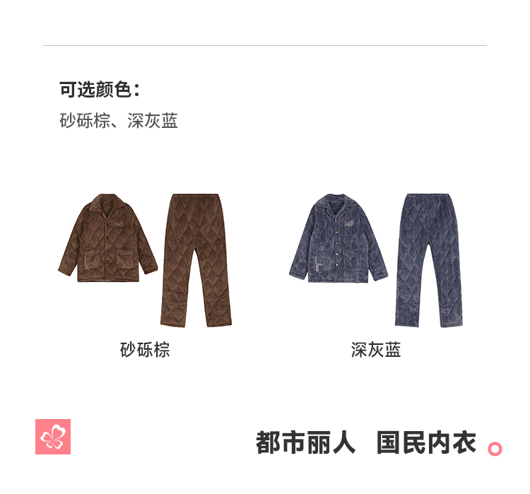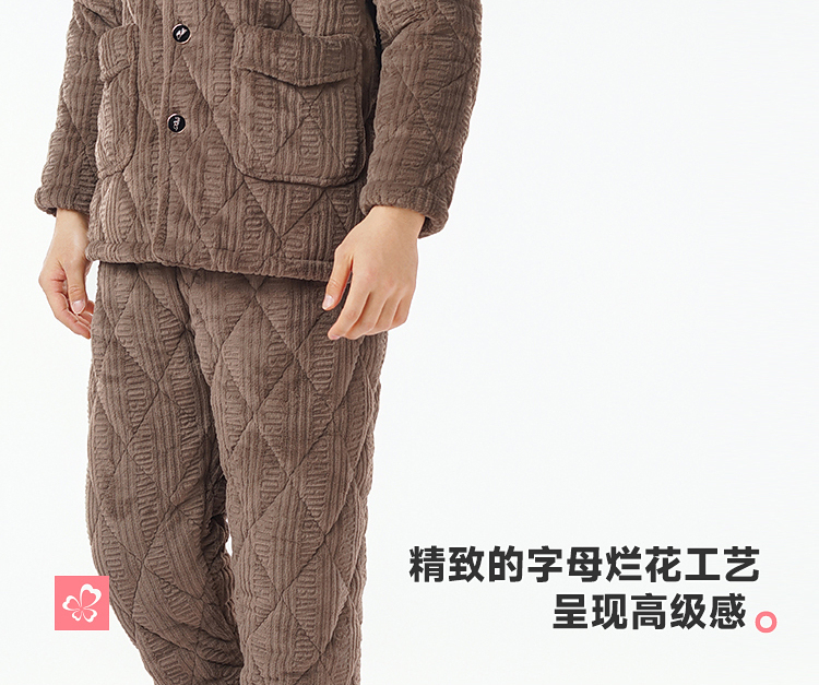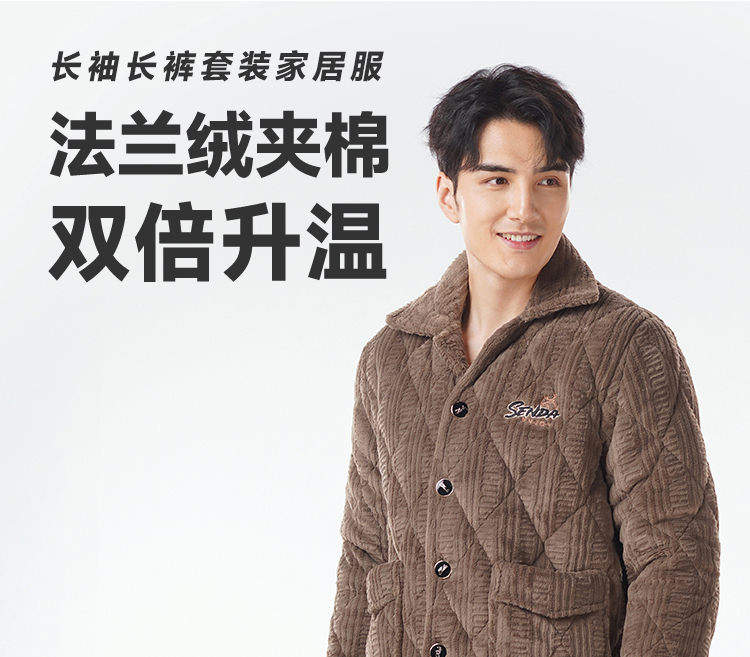 都市丽人睡衣法兰绒烂花夹棉男士家居服长袖长裤加厚夹棉FHH1E1