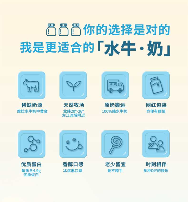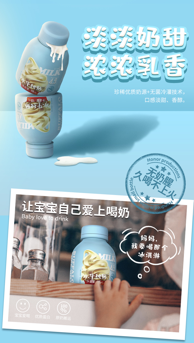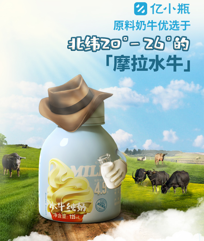 【冰淇淋口感】亿小瓶 水牛纯奶 整箱 新鲜 儿童 学生 早餐 纯牛奶 包邮