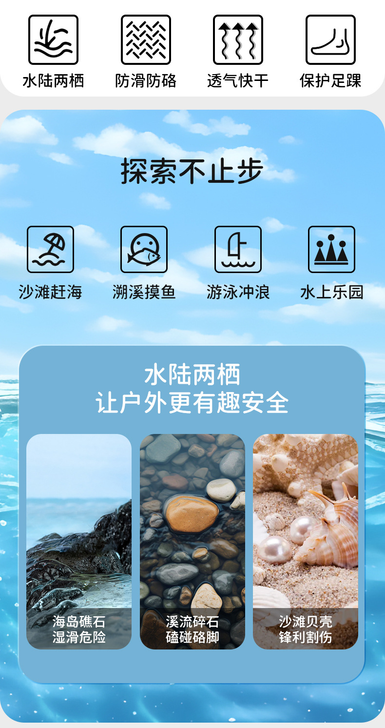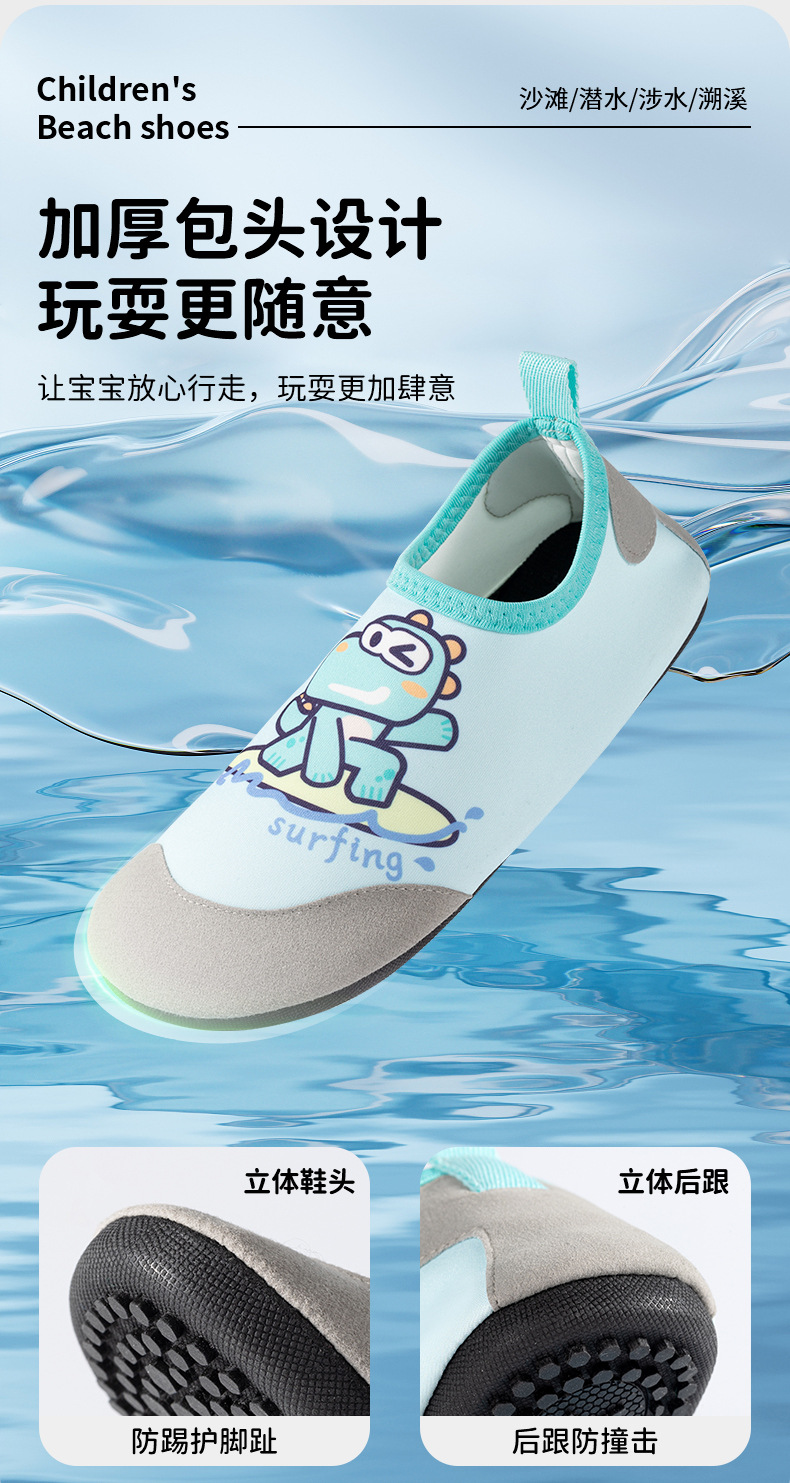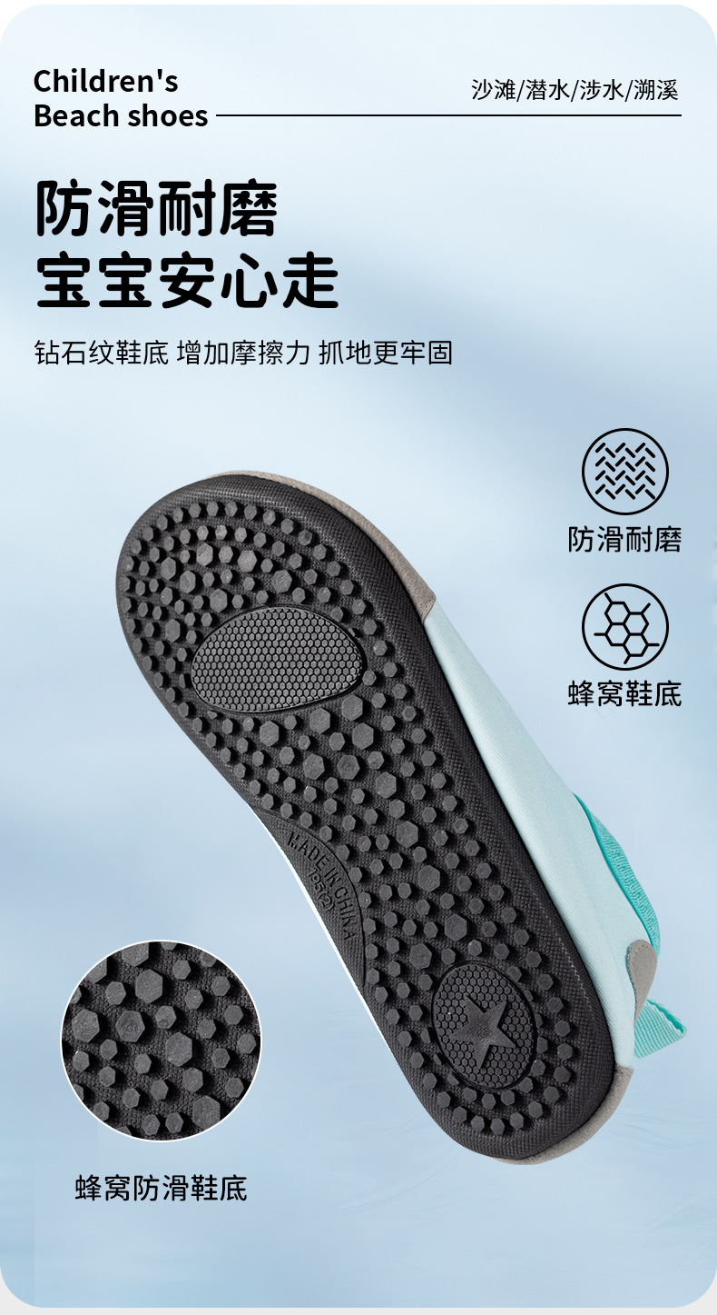 网红沙滩鞋儿童男女速干防滑软底沙滩袜潜水游泳溯溪鞋防滑防割贴