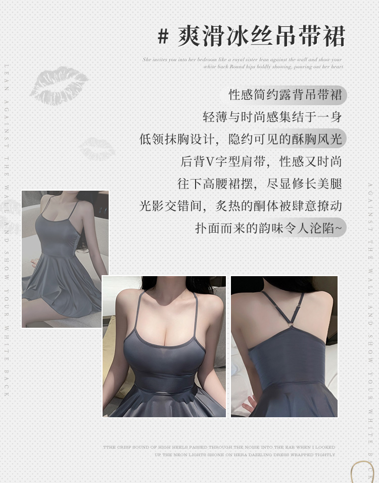 霏慕爽滑冰丝性感简约吊带裙6625