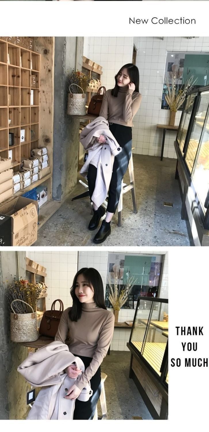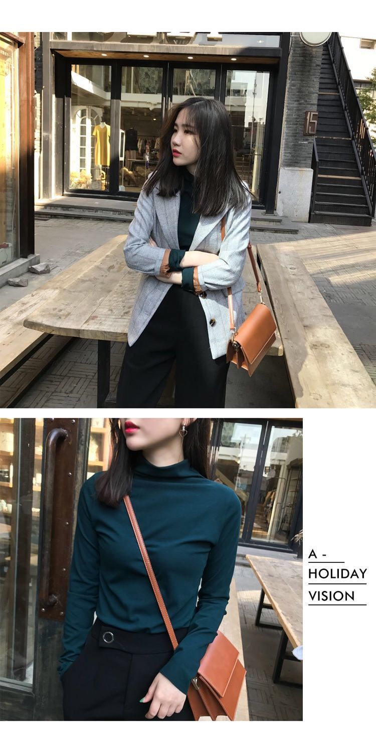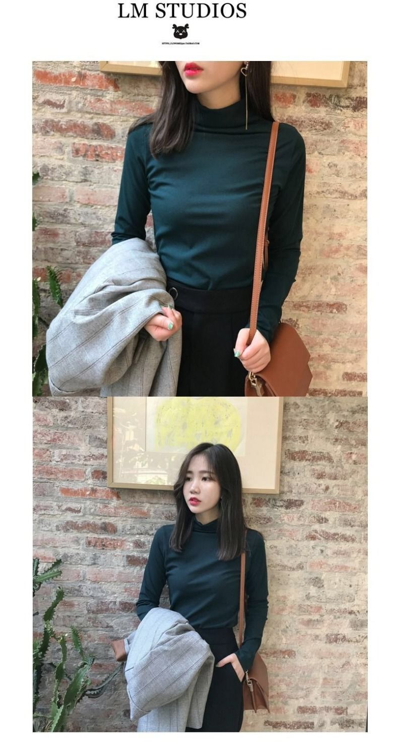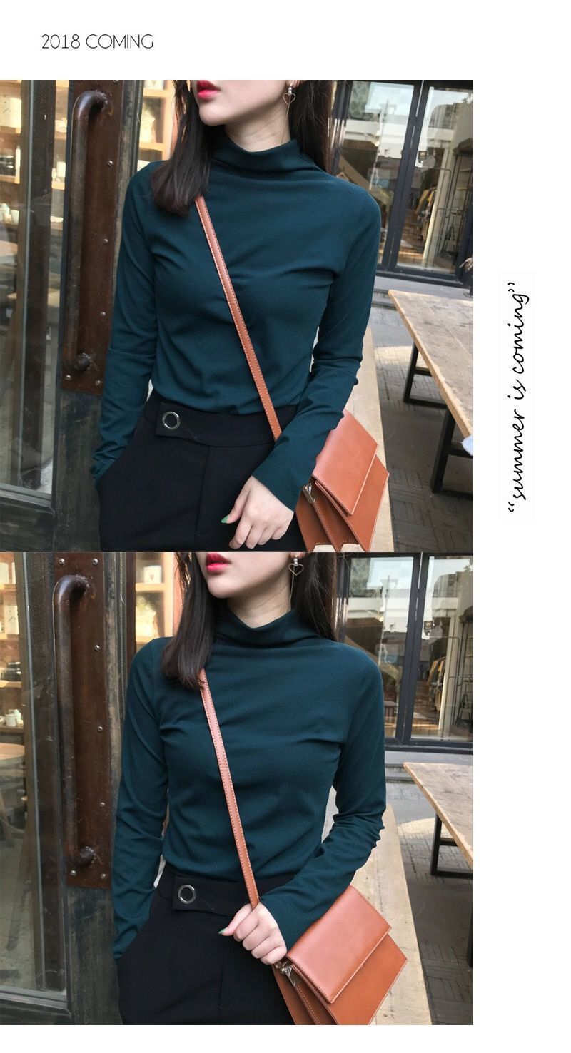 【买一送一 修身百搭时尚打底衫】纯色半高领打底衫秋冬新款薄修身显瘦长袖T恤女学生韩版上衣