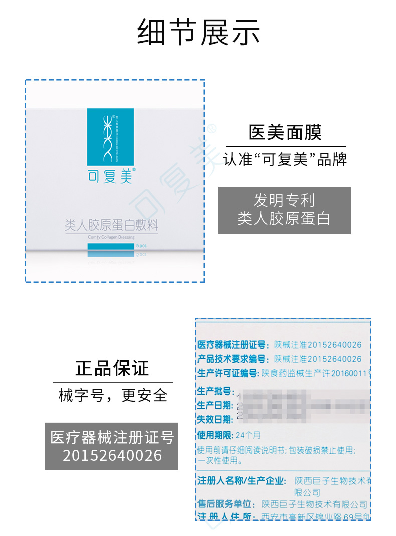 可复美 类人胶原蛋白敷料医美面膜敏感肌术后修复晒伤5片/盒
