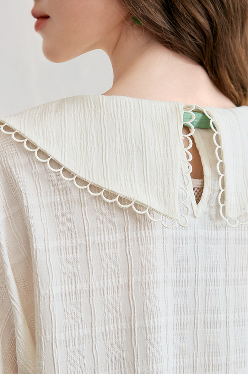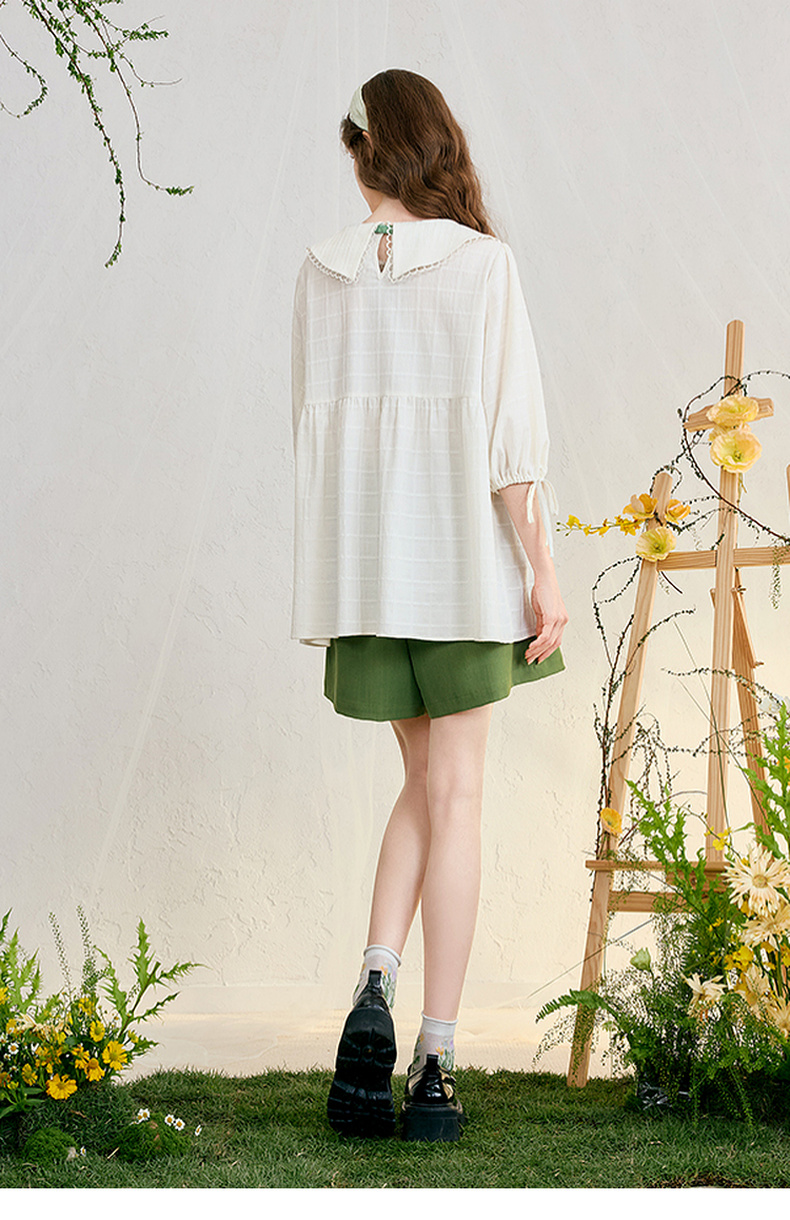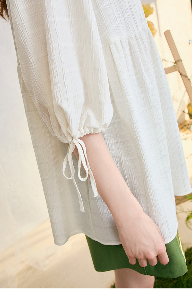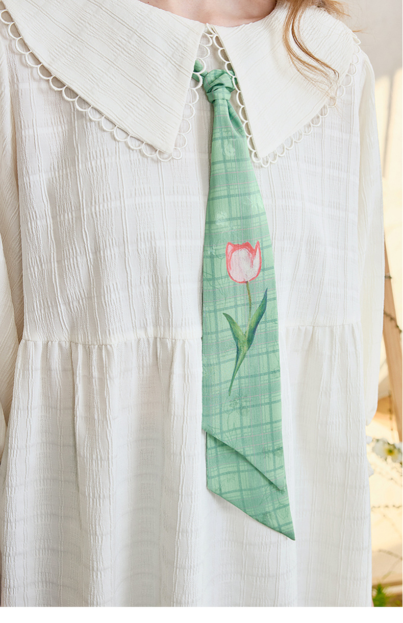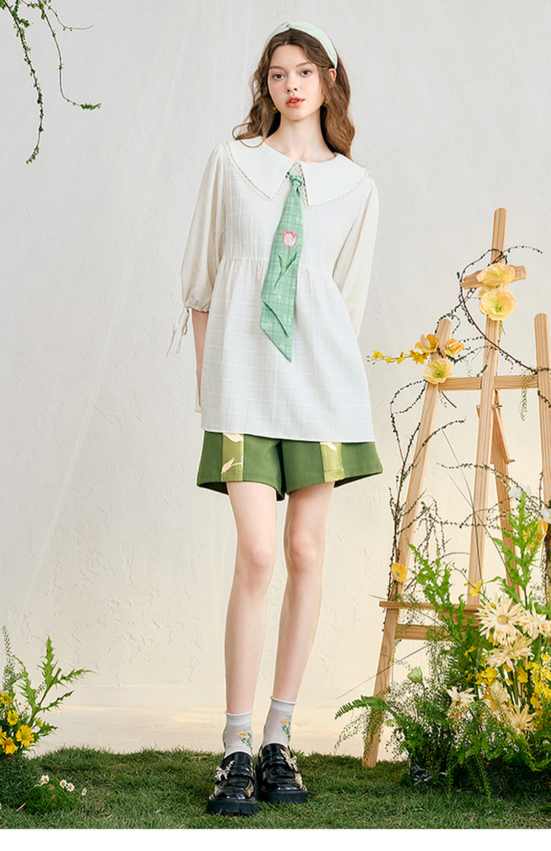 两三事 浮花清影 2025春季新款甜美印花领带绑带泡泡袖衬衫女宽松