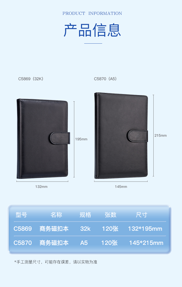 齐心 C5870 商务磁扣皮面本 A5 120张