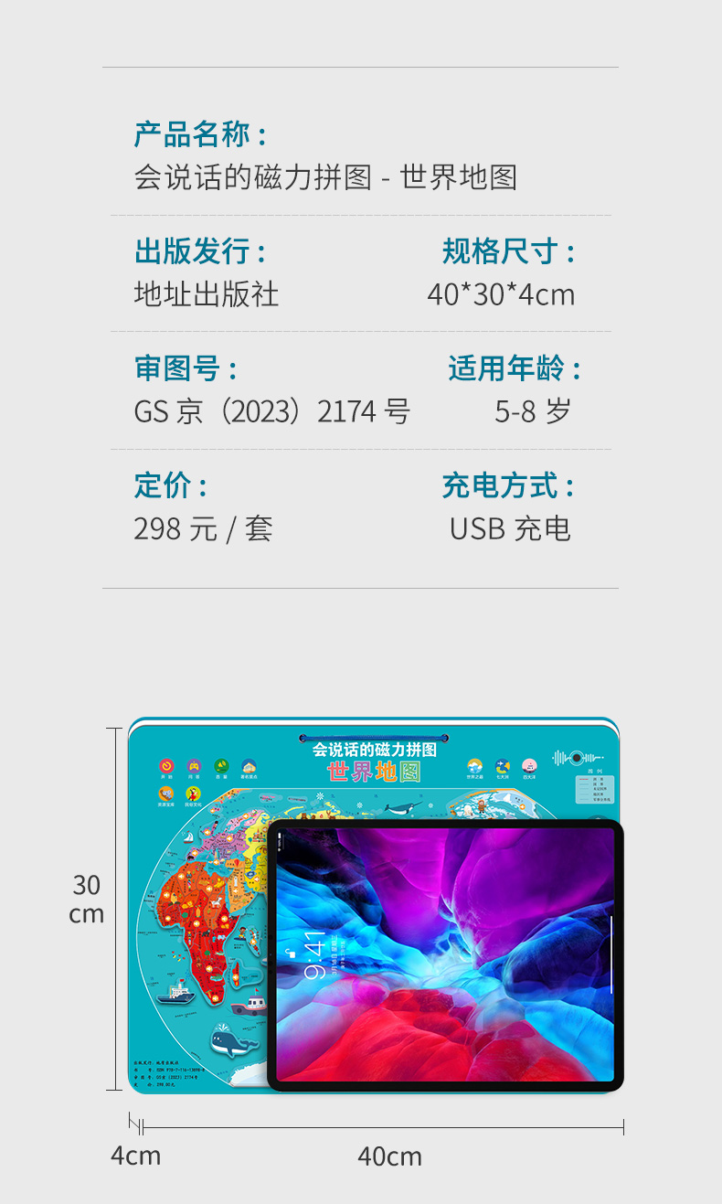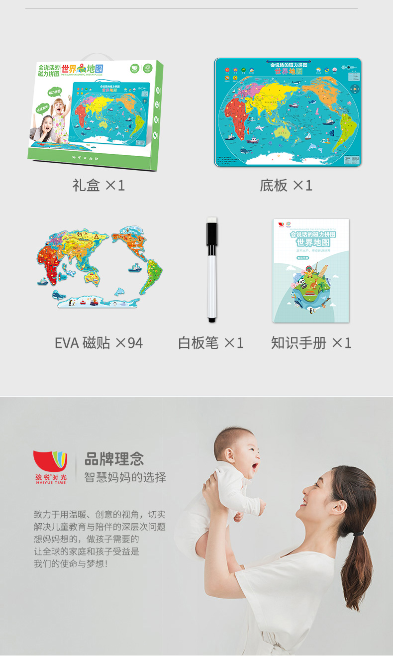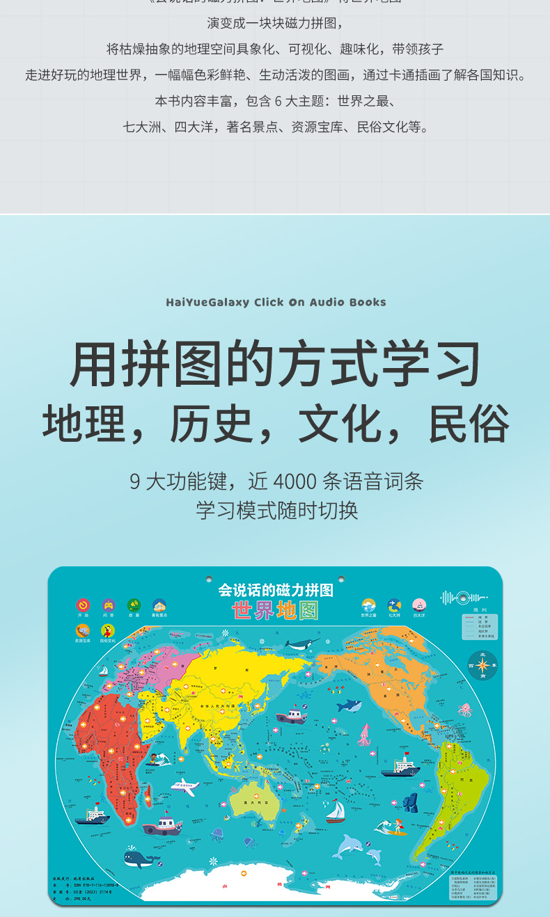 《世界地图》(彩盒)会说的的磁力地图拼图