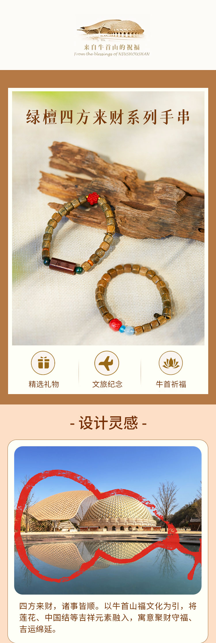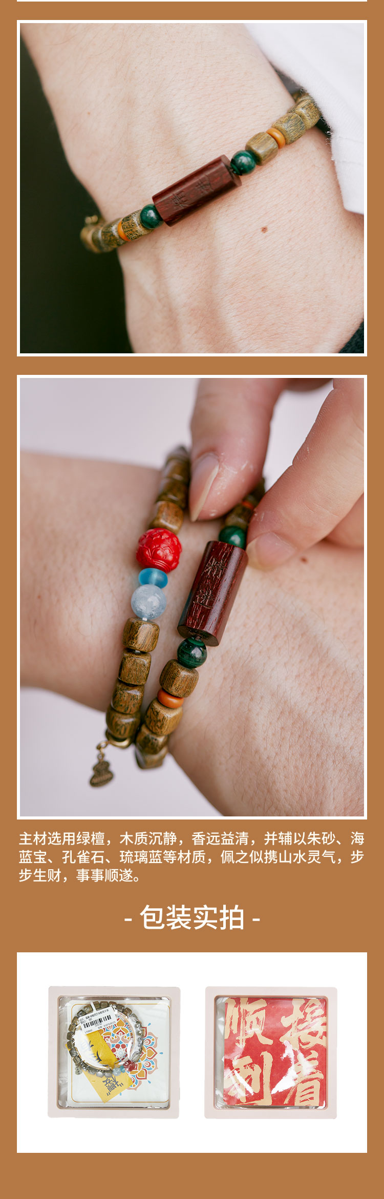 牛首山绿檀四方来财系列手串文玩念珠文玩手串手链送朋友礼物