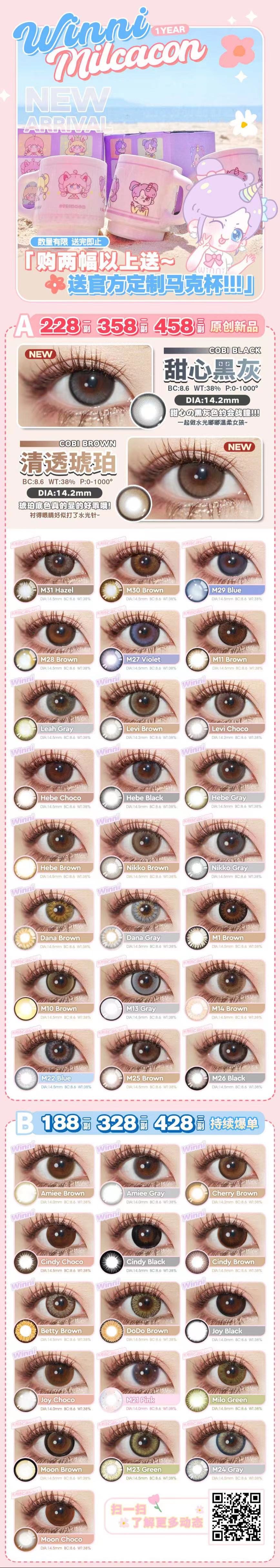 【常规-年抛活动】MILACACON &WINNI -14.0mm-14.2mm-14.5mm【年抛 度数0-1000度 含525/575】长期活动