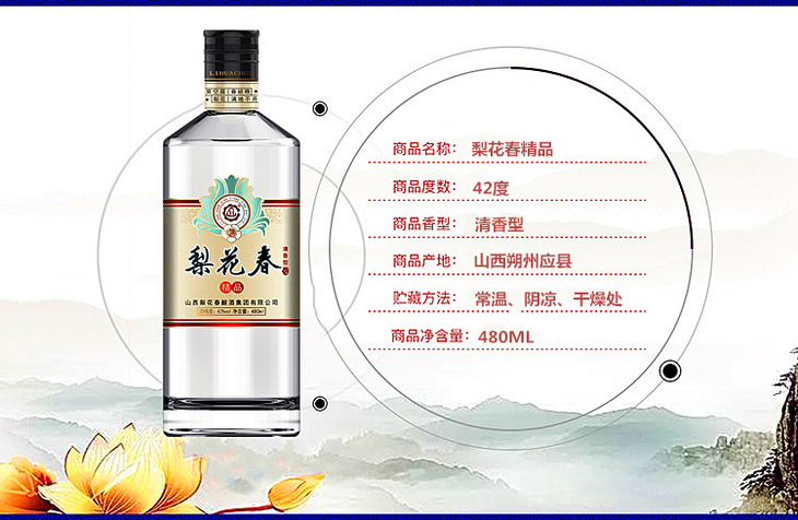 【梨花春】 梨花春精品42度白酒 480ml/瓶