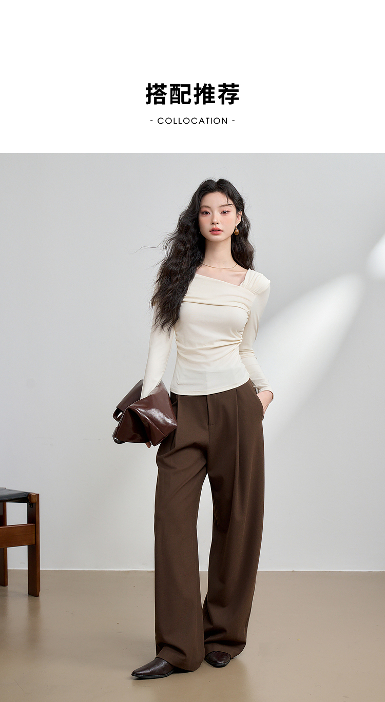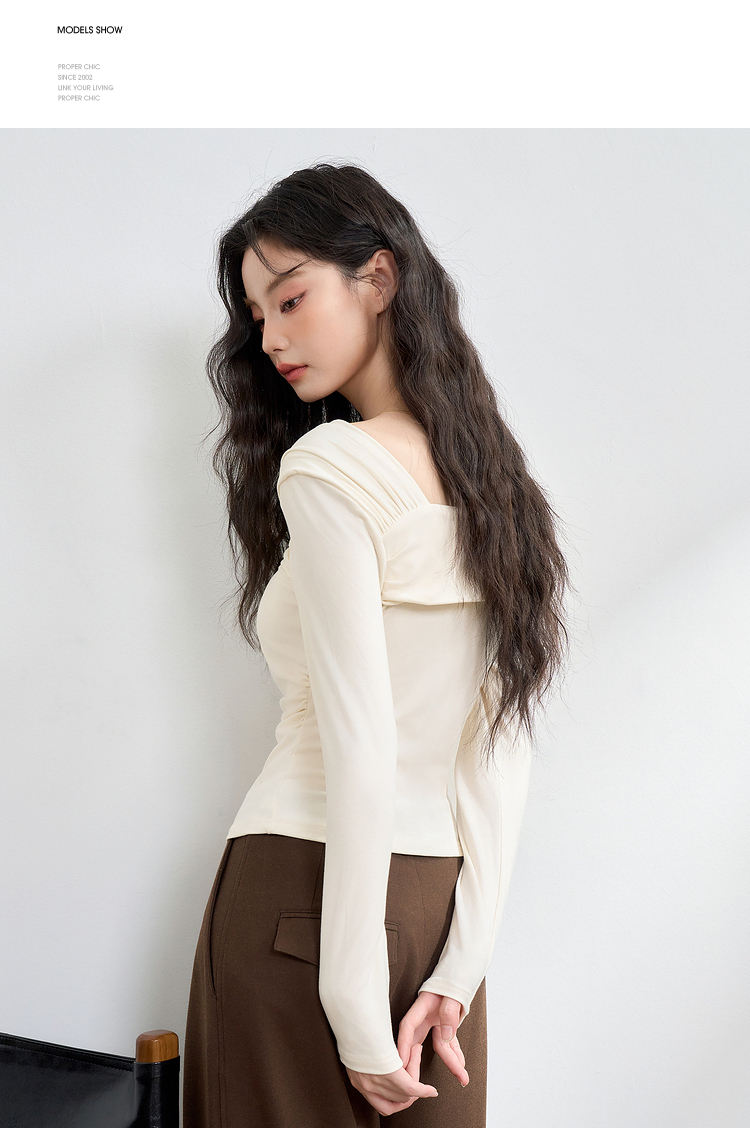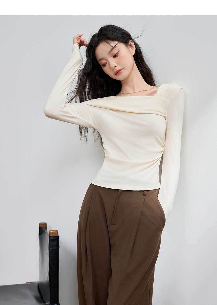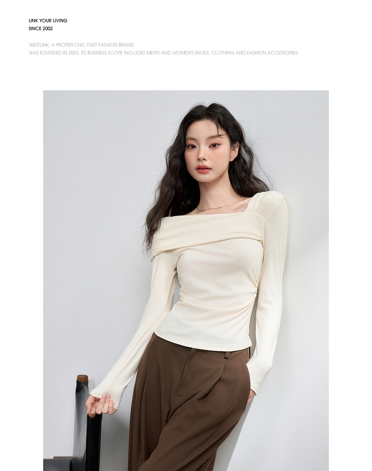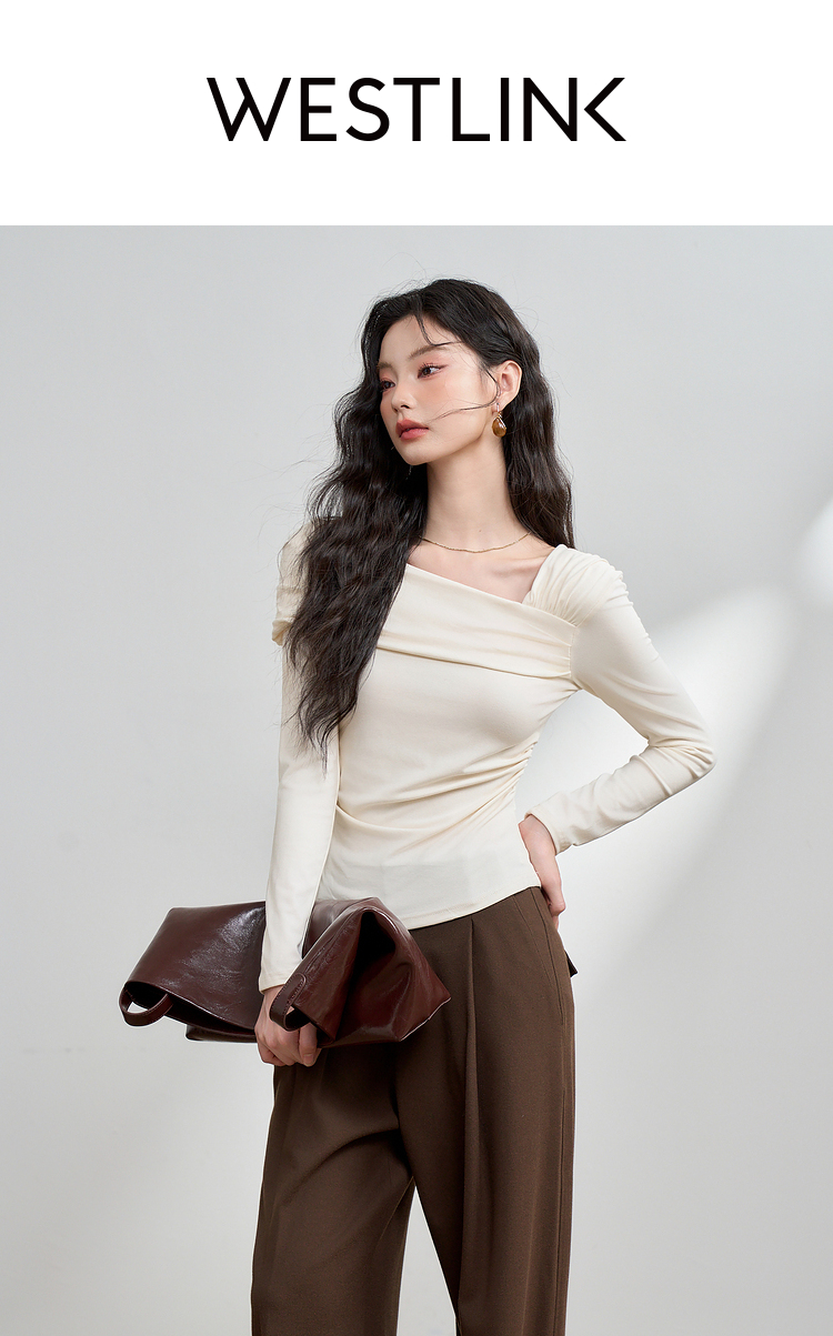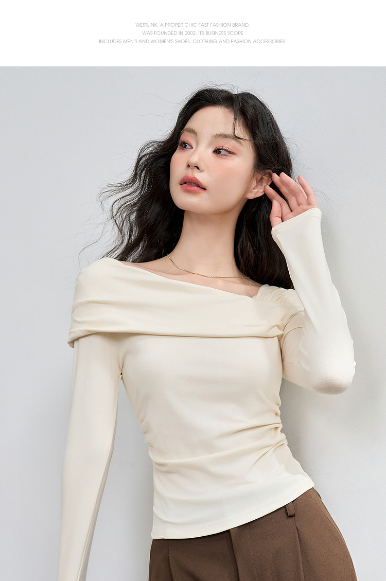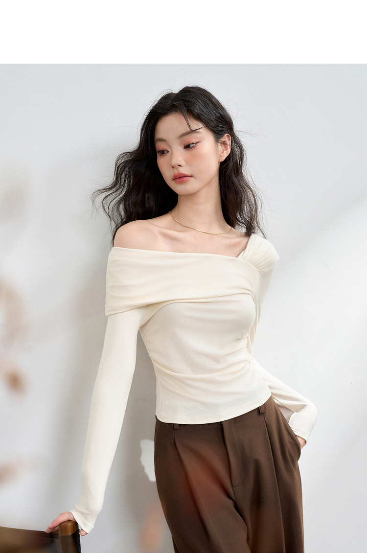 西遇法式温柔气质斜肩长袖T恤女新款薄款初秋穿搭高级感上衣M0043156