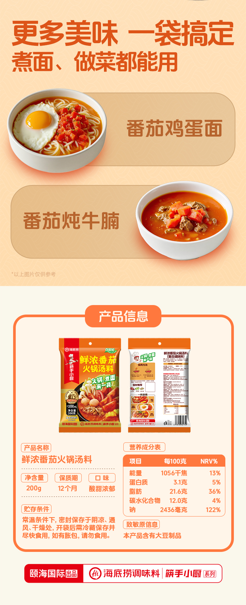 海底捞筷手小厨鲜浓番茄火锅汤料200g