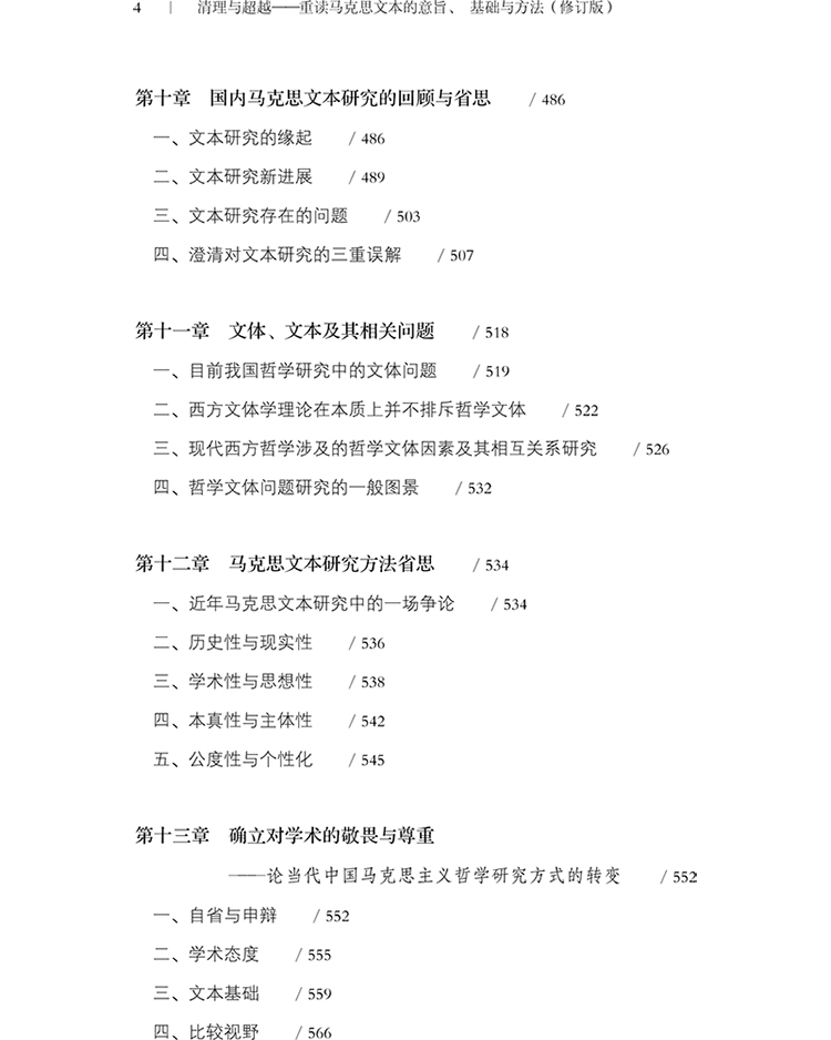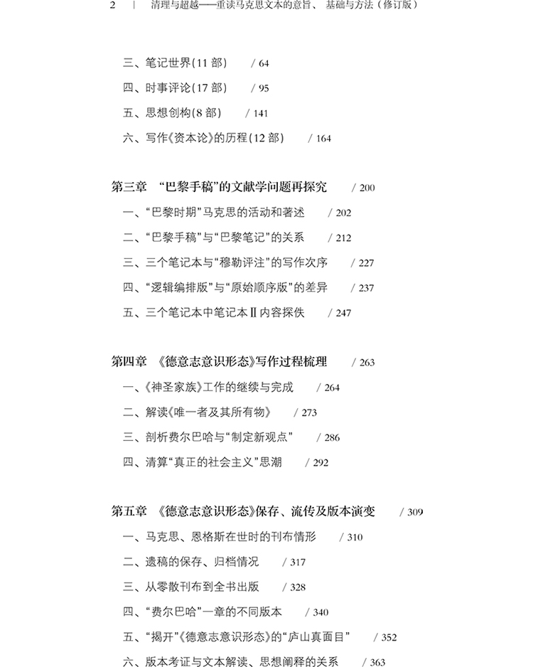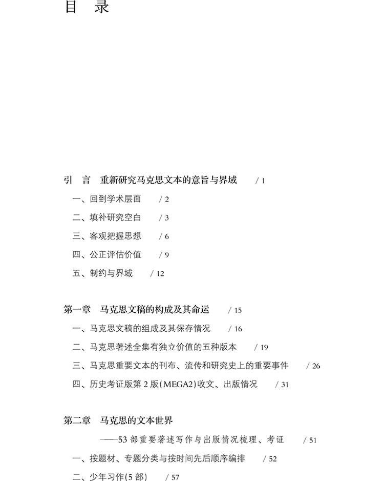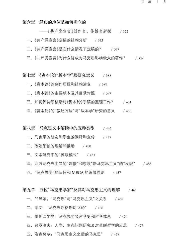 本书是在当代新的境遇下对马克思文本研究的学术基础清理和方法论省思。作者利用丰富的文献资料对马克思手稿、笔记、藏书的保存、流传的总体情况进行了梳理,从中选取了50余部最能表征马克思思想特质、内涵以及发展历程的重要著述,对其写作与出版情况进行了考证。此外,作者还在书中对马克思文本研究史上有重要影响的几种类型,特别是国外“马克思学”代表人物对马克思主义的理解做了分析。在此基础上,围绕“马克思研究到底是一种什么性质的研究”这一焦点问题,对文本研究所关涉的历史性与现实性、学术性与思想性、本真性与主体性、公度性与个性化,以及“文本研究”与“比较研究”“现实研究”的关系,比较的前提、比较的态度与比较的逻辑等进行了反思和阐释,进而形成作者所理解的马克思文本研究的“当代方式”。本书首版于2005年6月,此次修订校改了三分之二的内容,增补了15万字的篇幅。