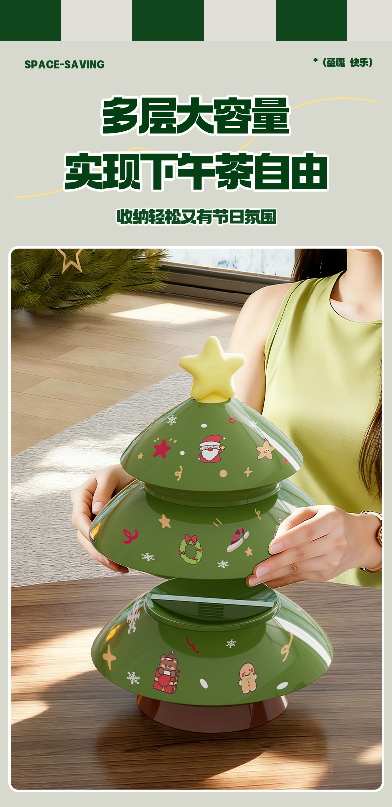 【圣诞节糖果盘】圣诞树果篮多层分格 零食糖果盒 春节年货客厅盘子