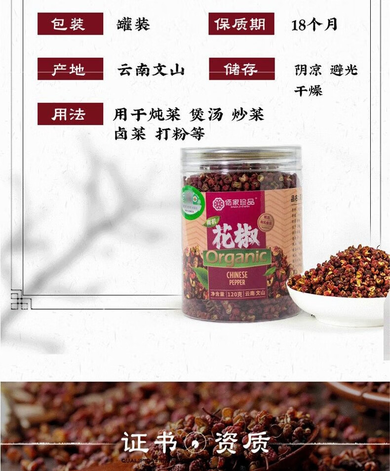 佰家珍品有机花椒 云南大红袍有机红椒花椒粒火锅底料食材香料调味料120g