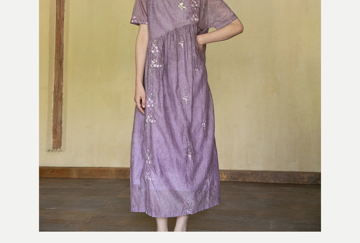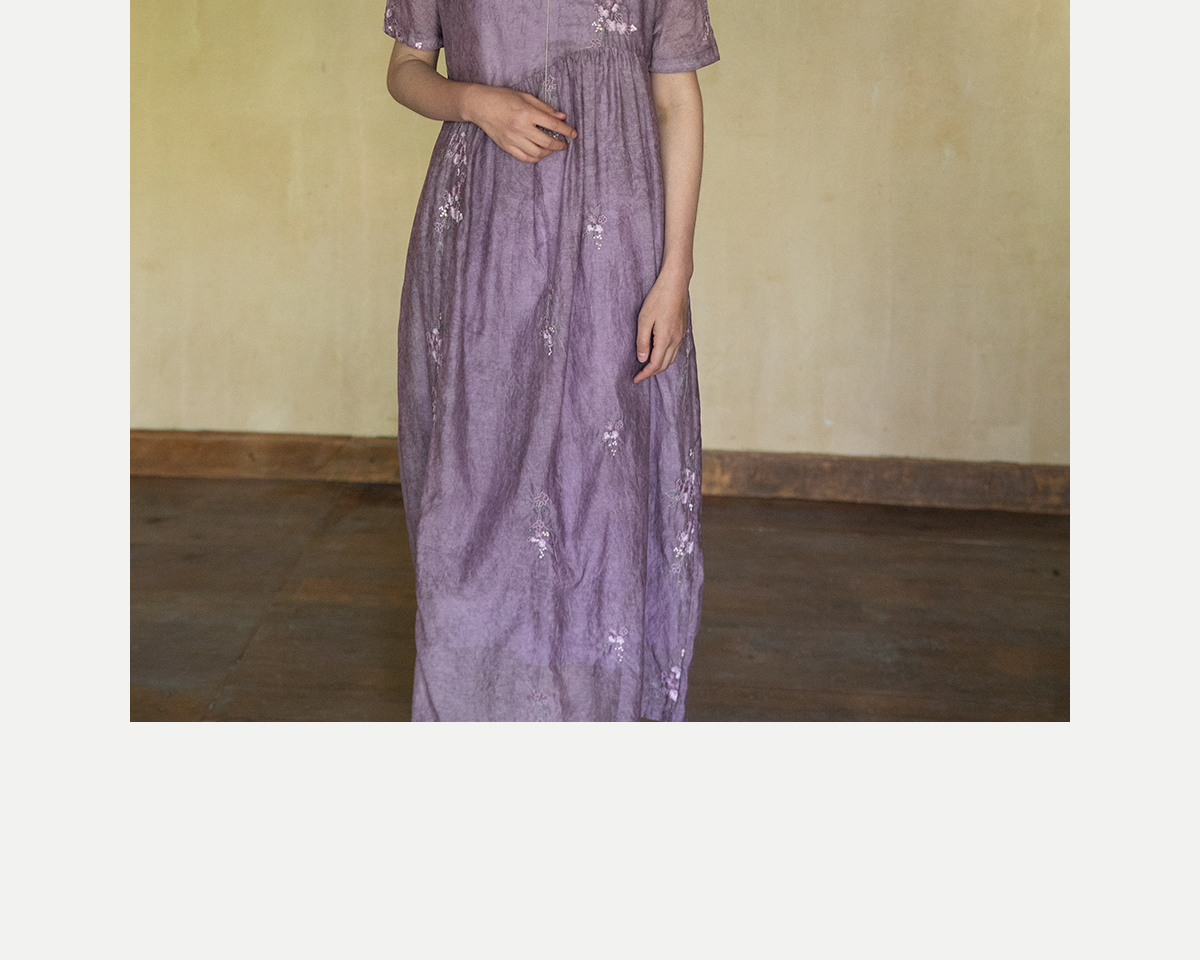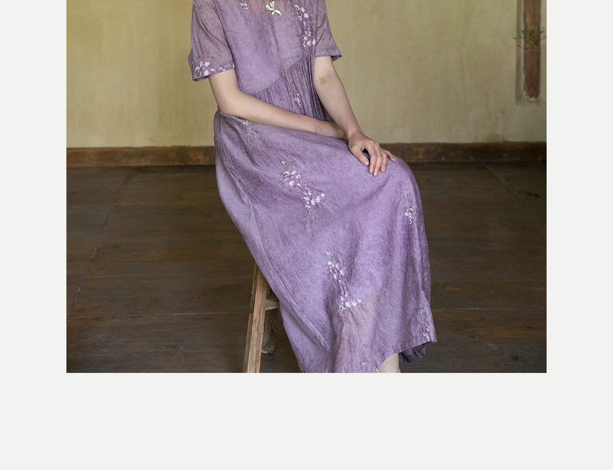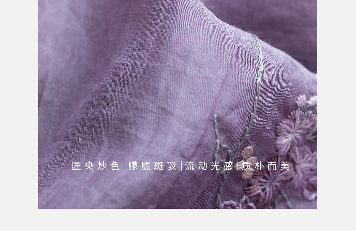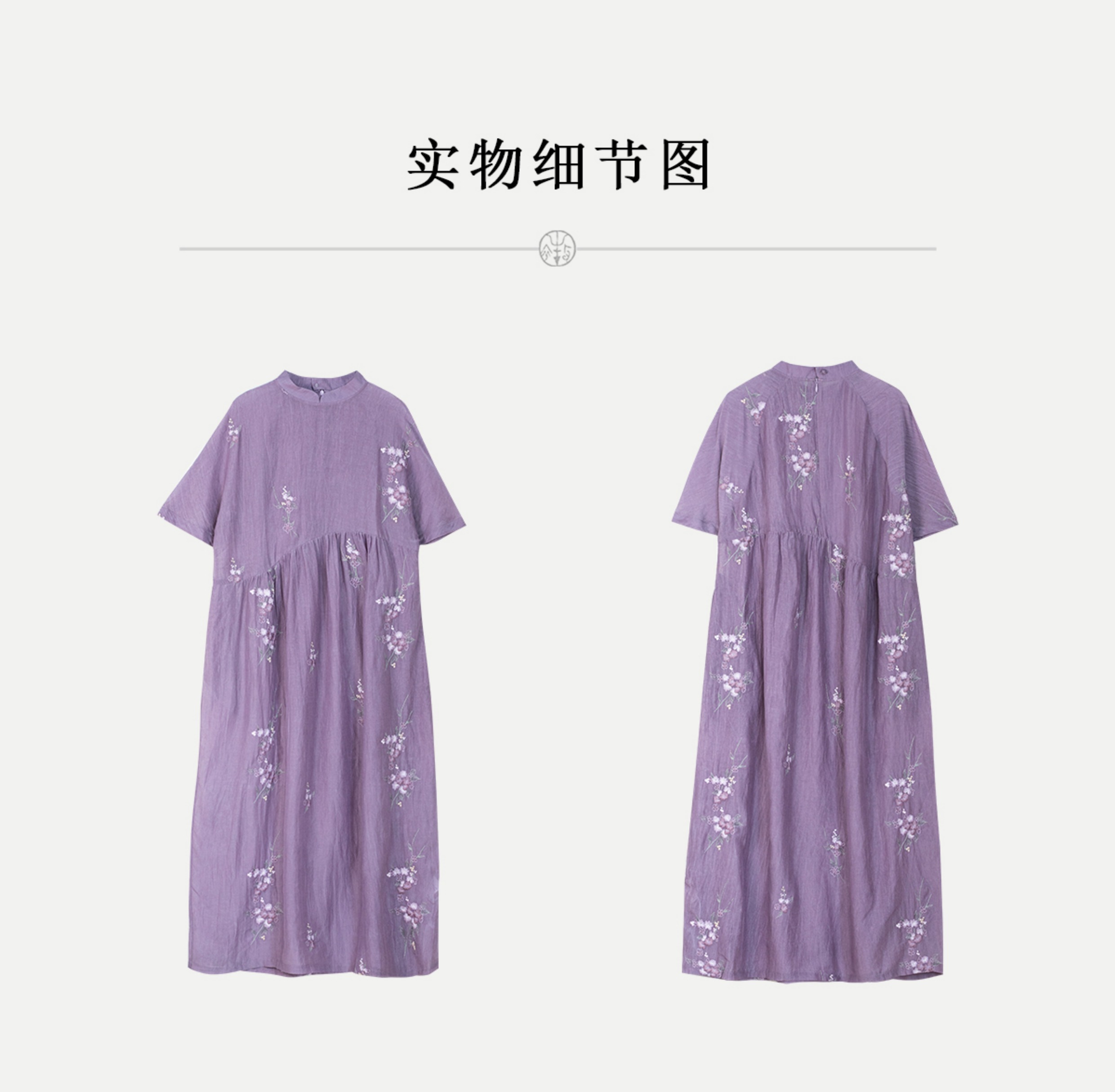 牧衣游原创 炒色丝棉匹绣连衣裙新款减龄禅意文艺气质长裙 月寻人