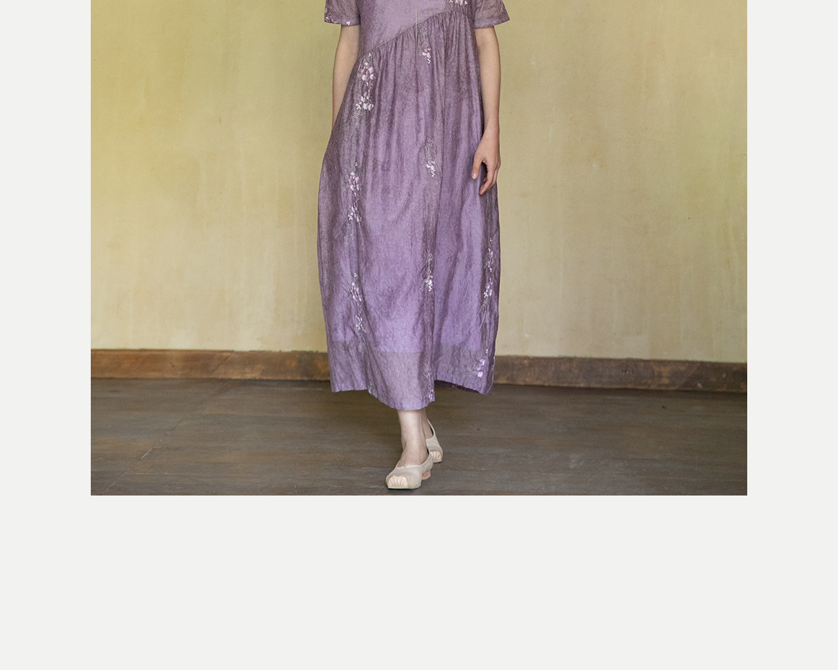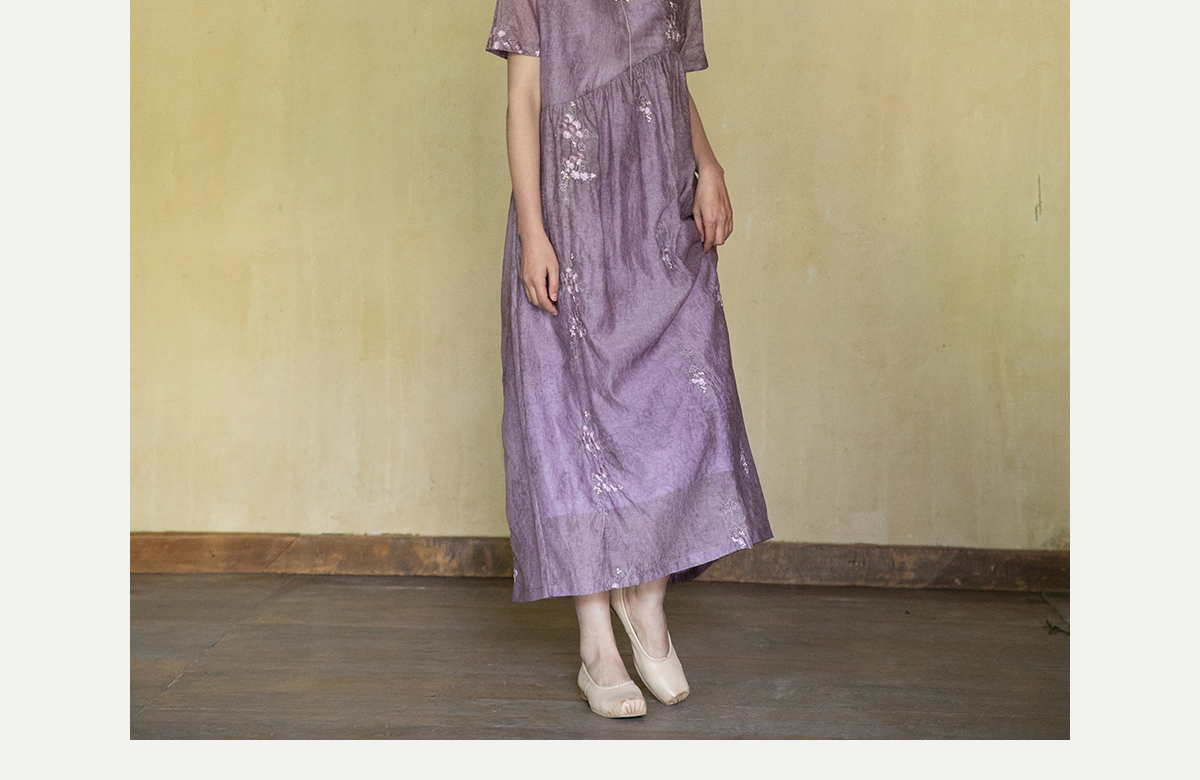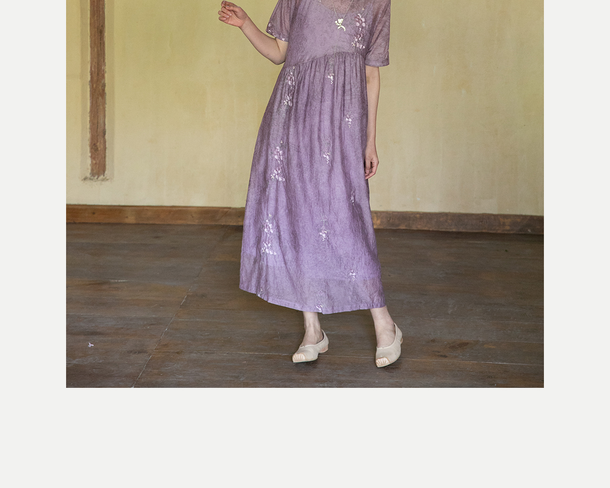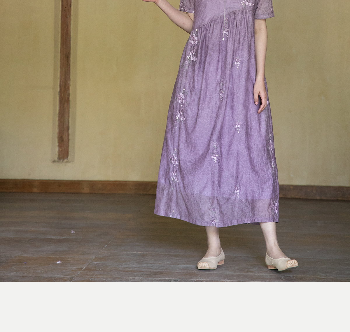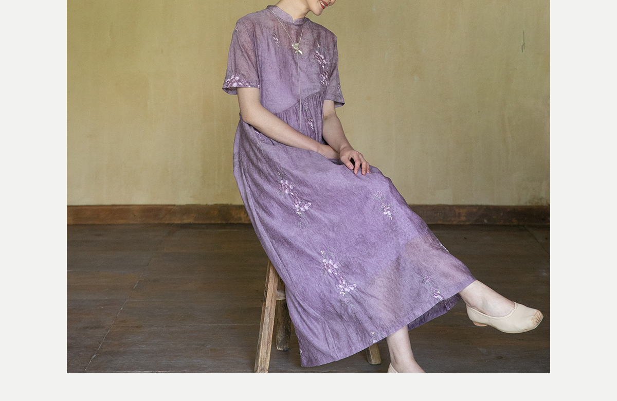 牧衣游原创 炒色丝棉匹绣连衣裙新款减龄禅意文艺气质长裙 月寻人