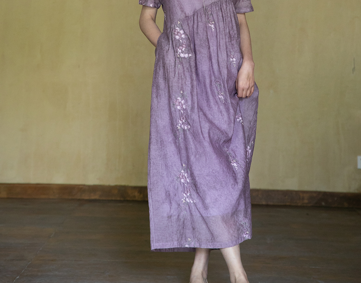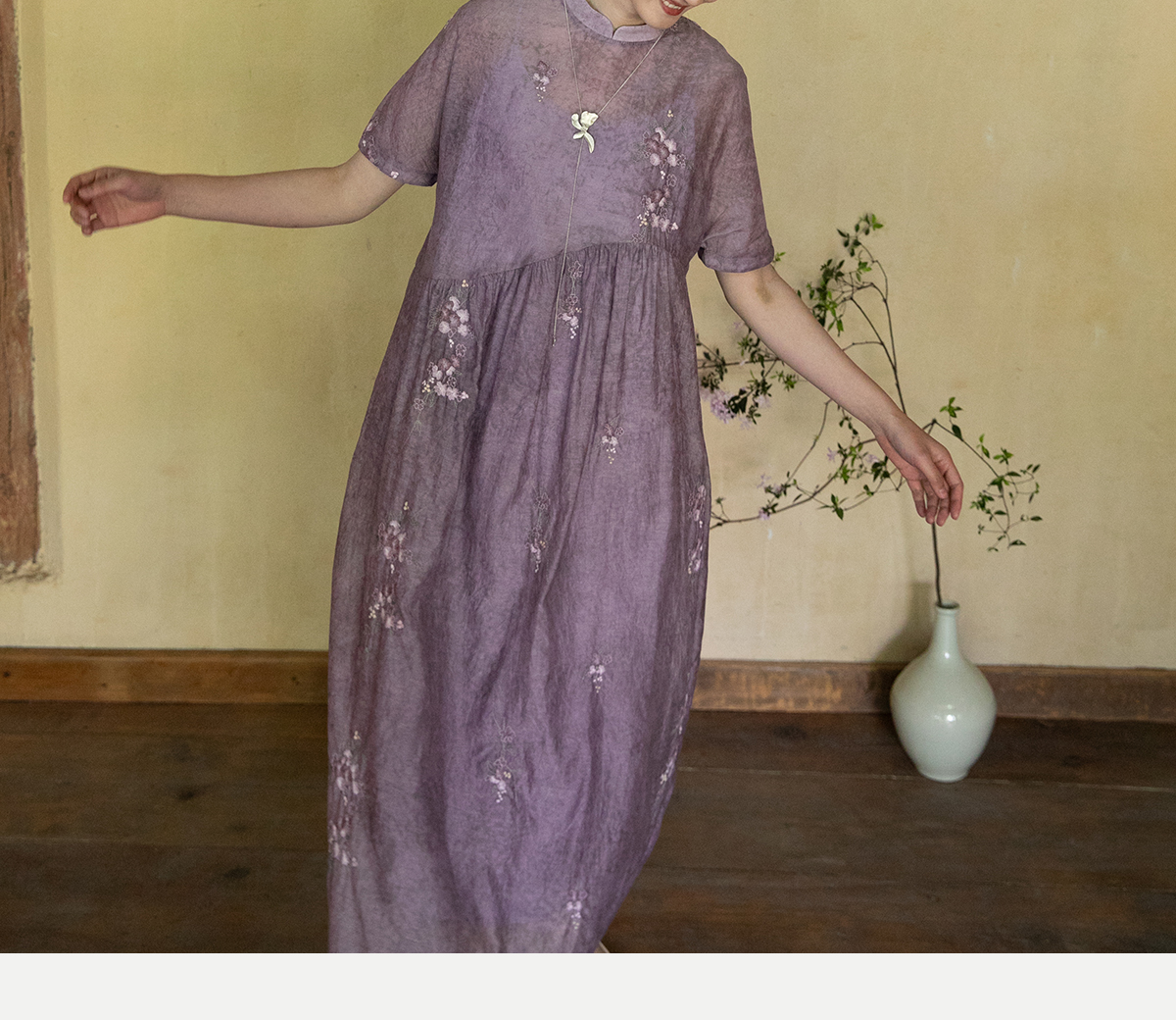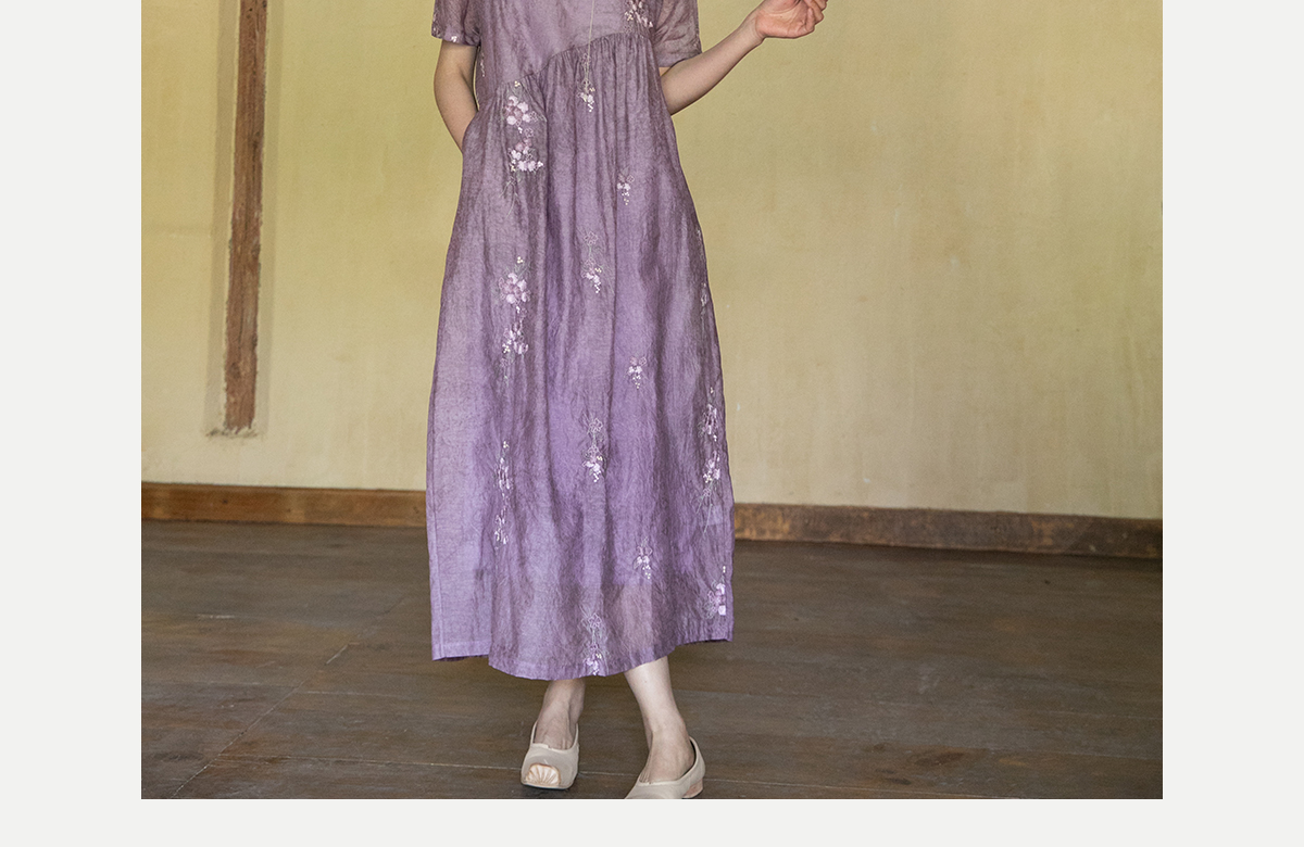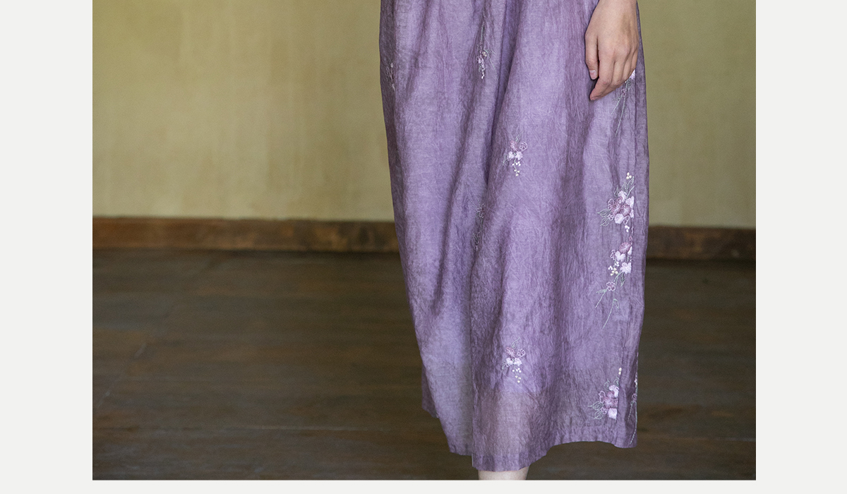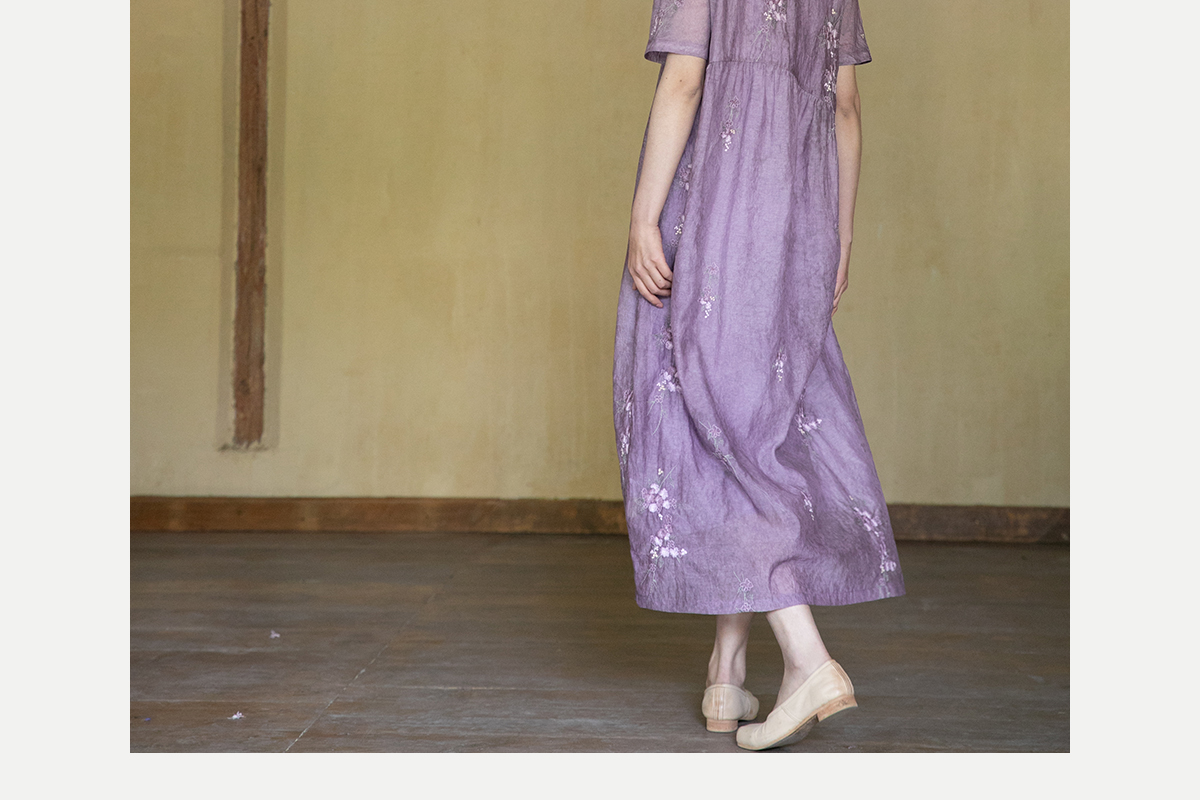 牧衣游原创 炒色丝棉匹绣连衣裙新款减龄禅意文艺气质长裙 月寻人