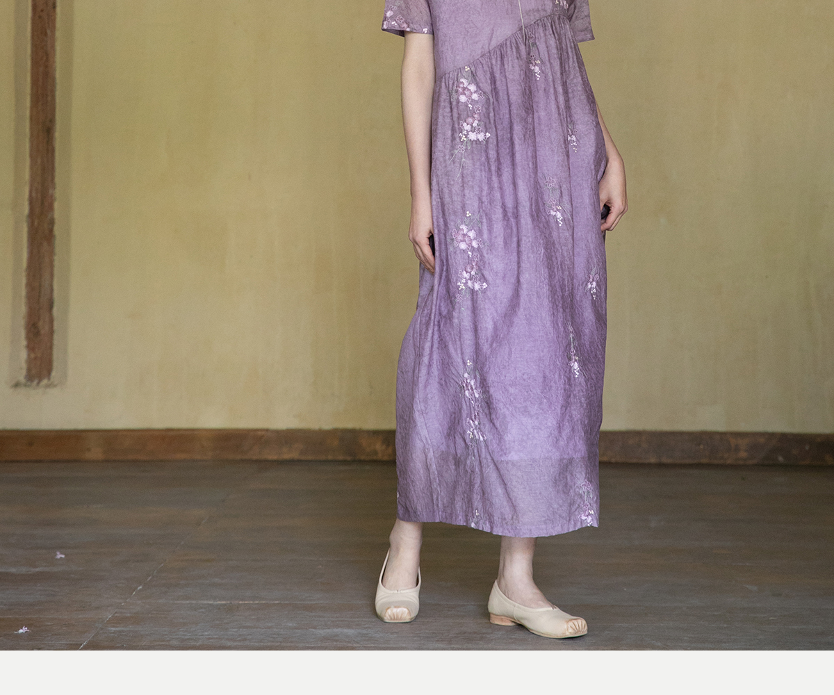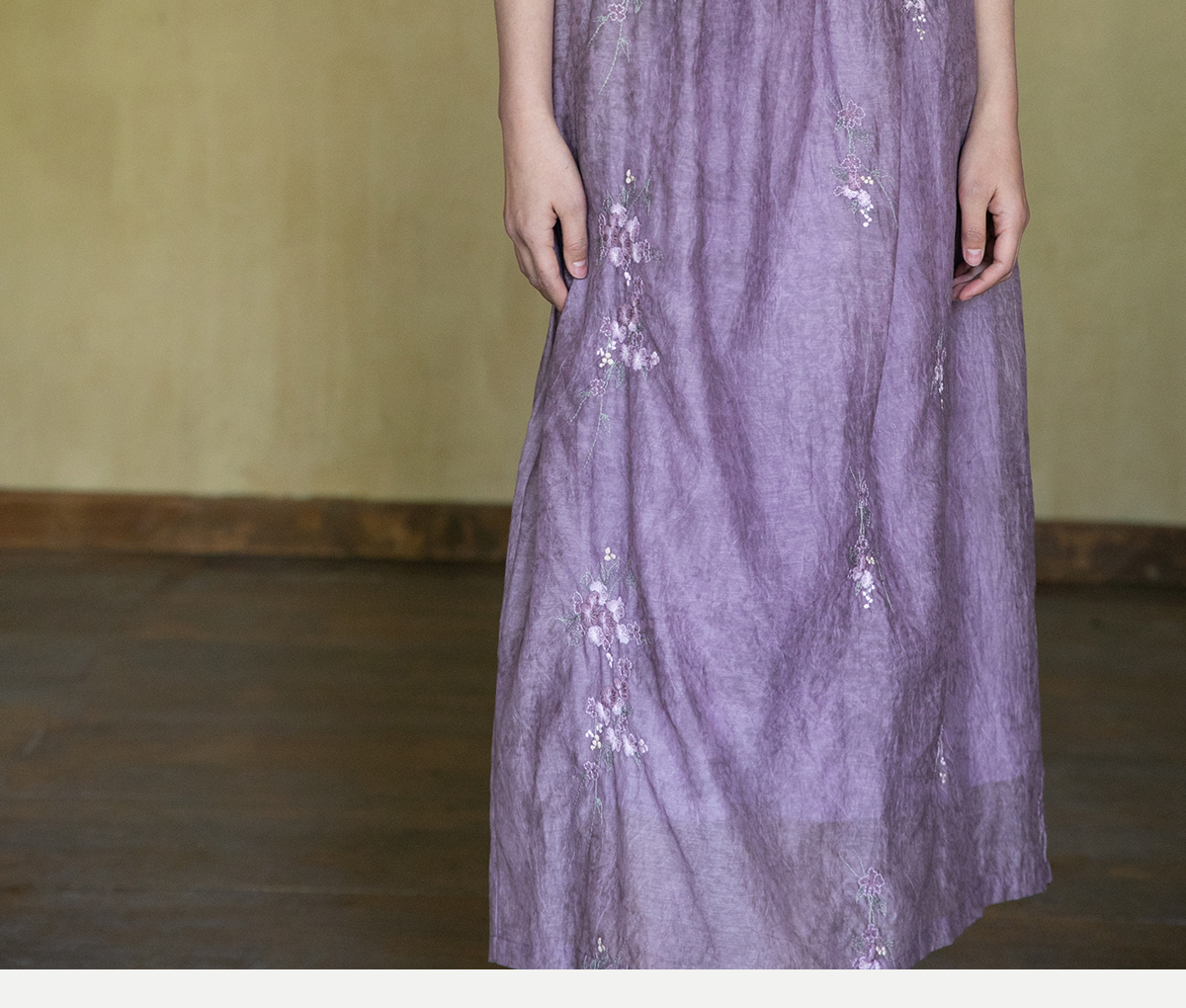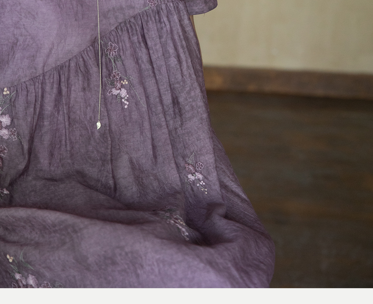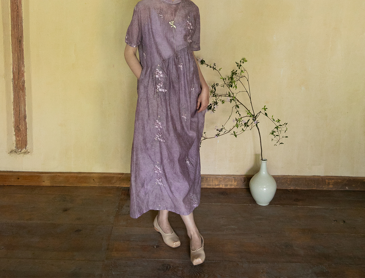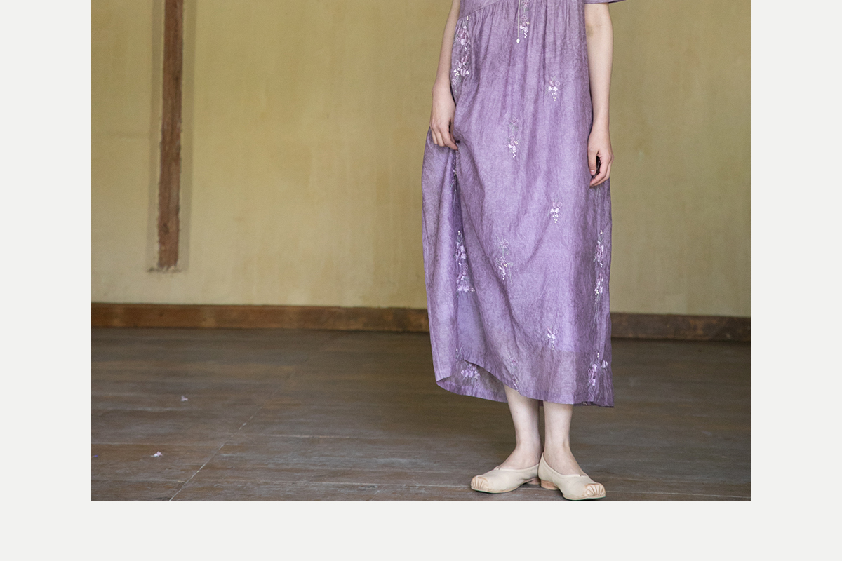 牧衣游原创 炒色丝棉匹绣连衣裙新款减龄禅意文艺气质长裙 月寻人
