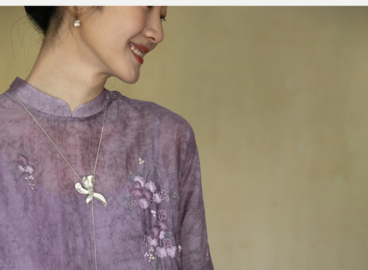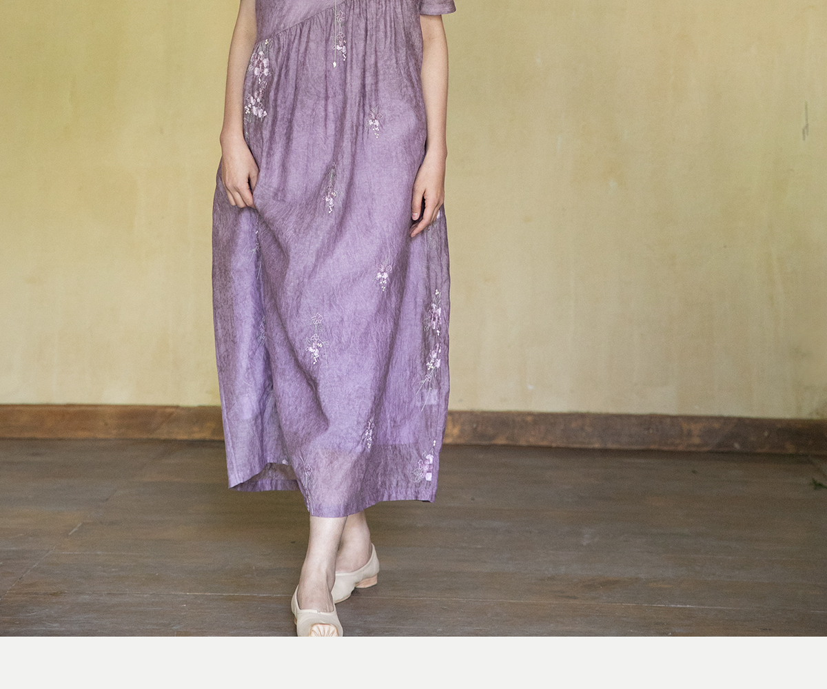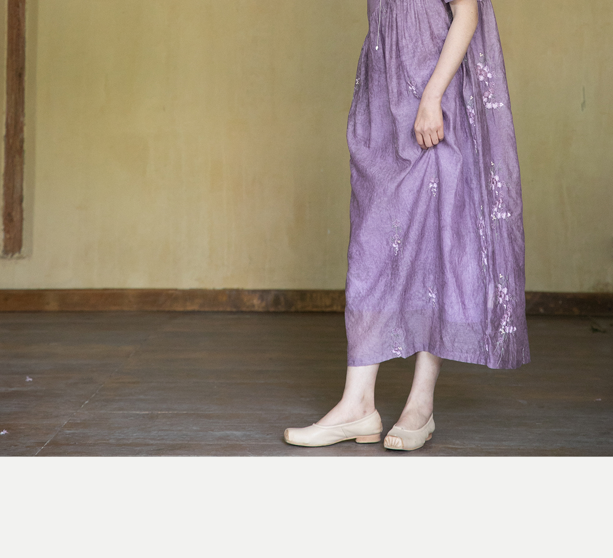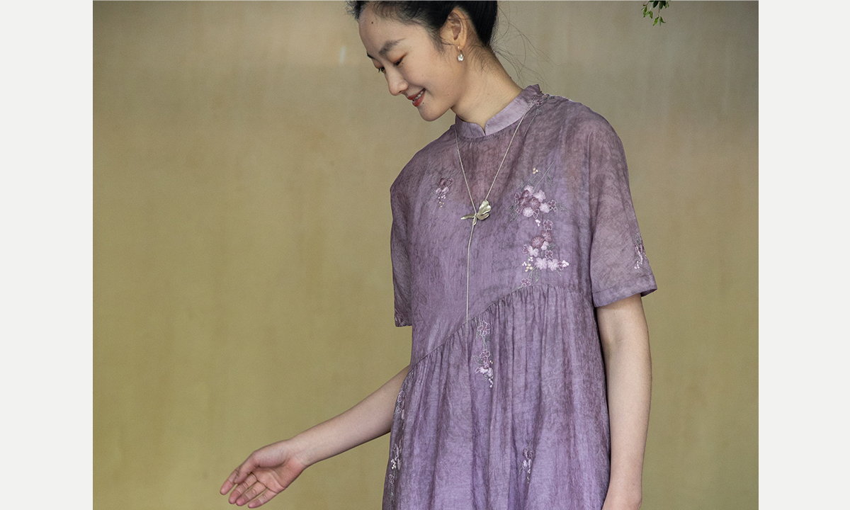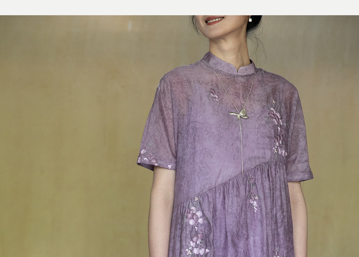 牧衣游原创 炒色丝棉匹绣连衣裙新款减龄禅意文艺气质长裙 月寻人