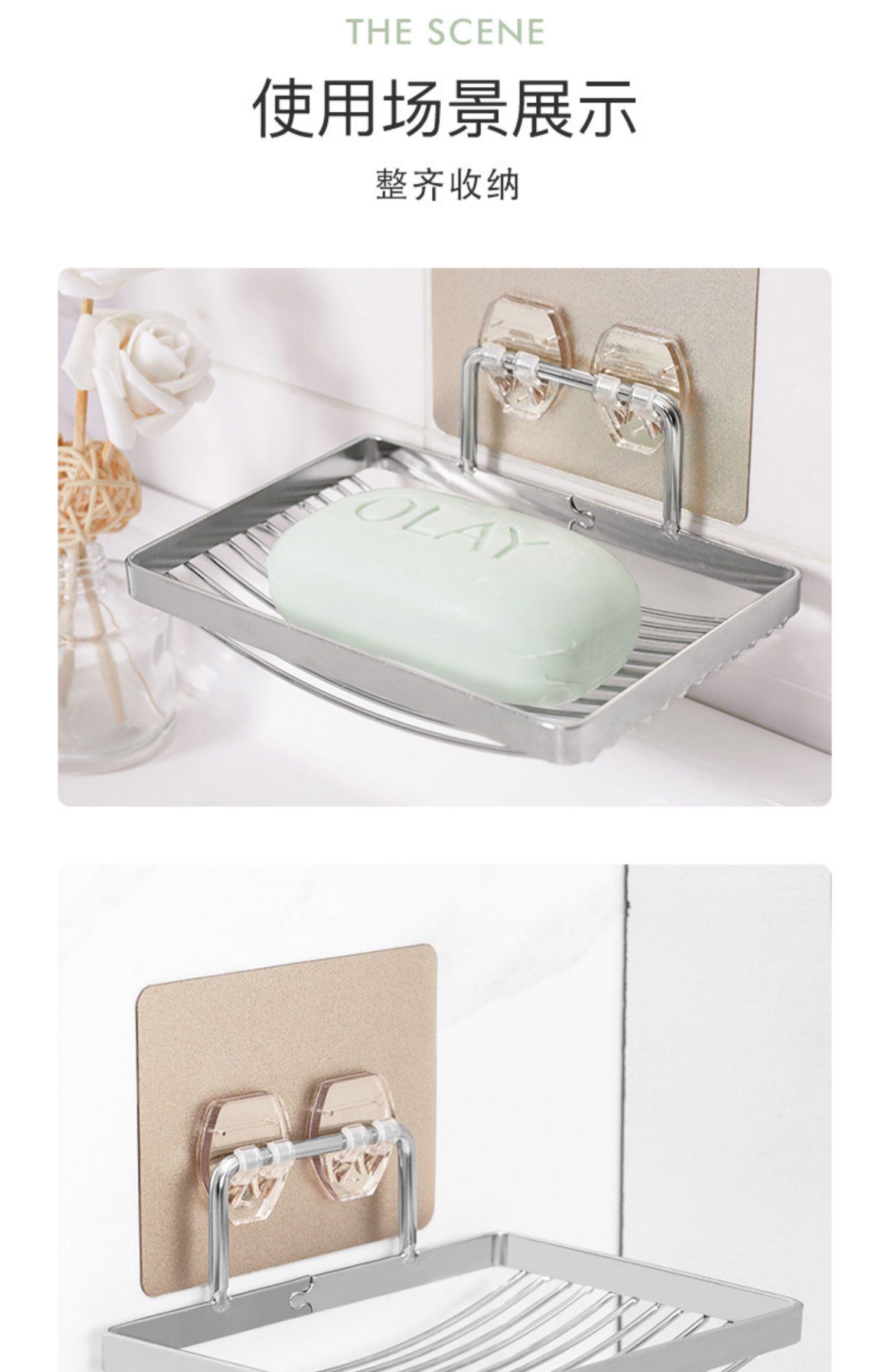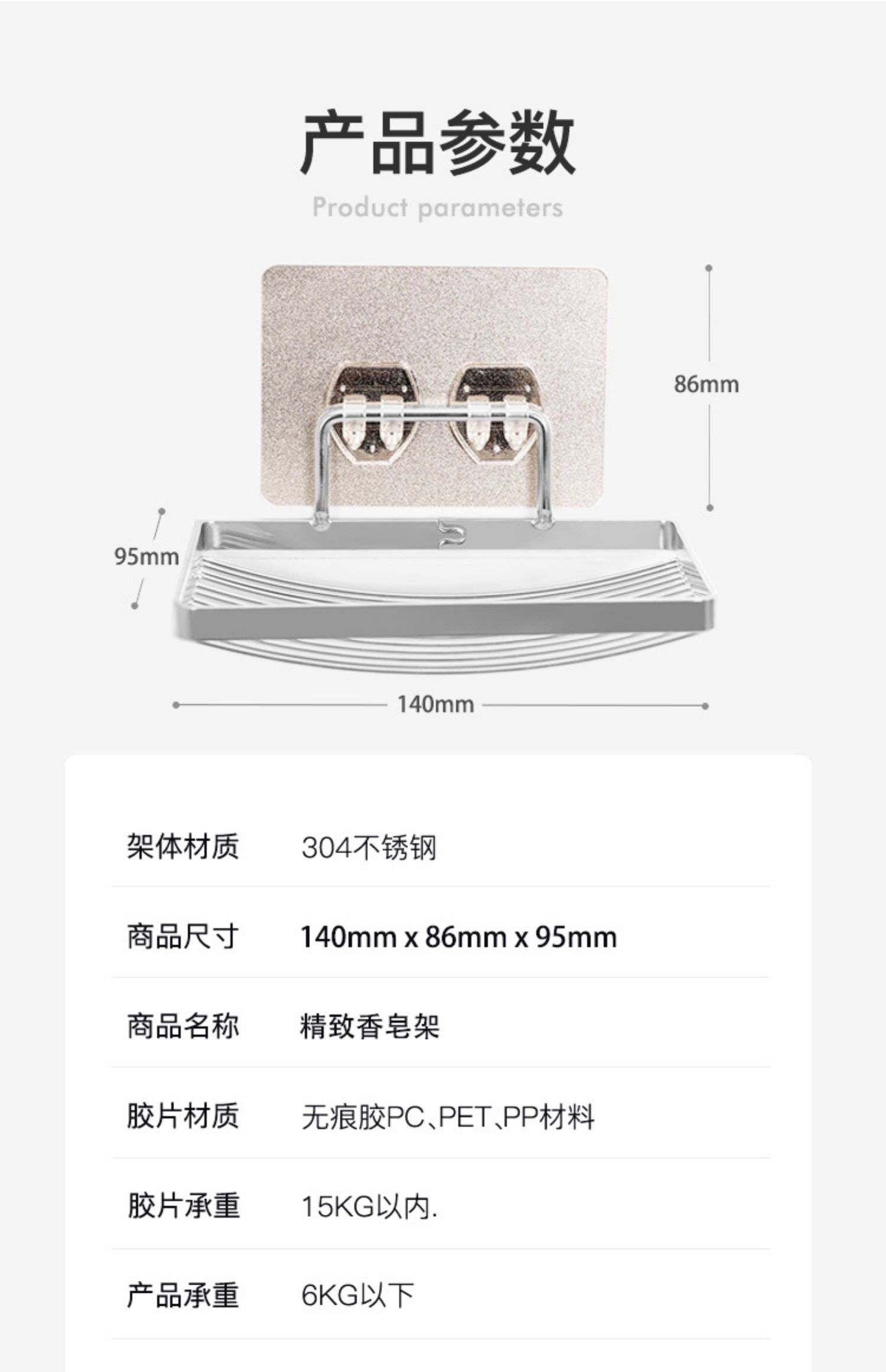 奇丽屋精致单格香皂架肥皂盒免打孔不锈钢沥水置物架