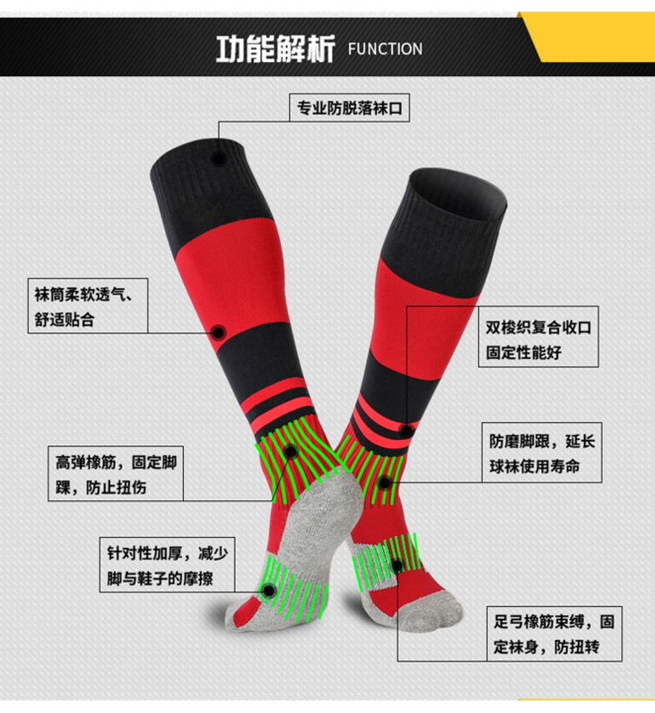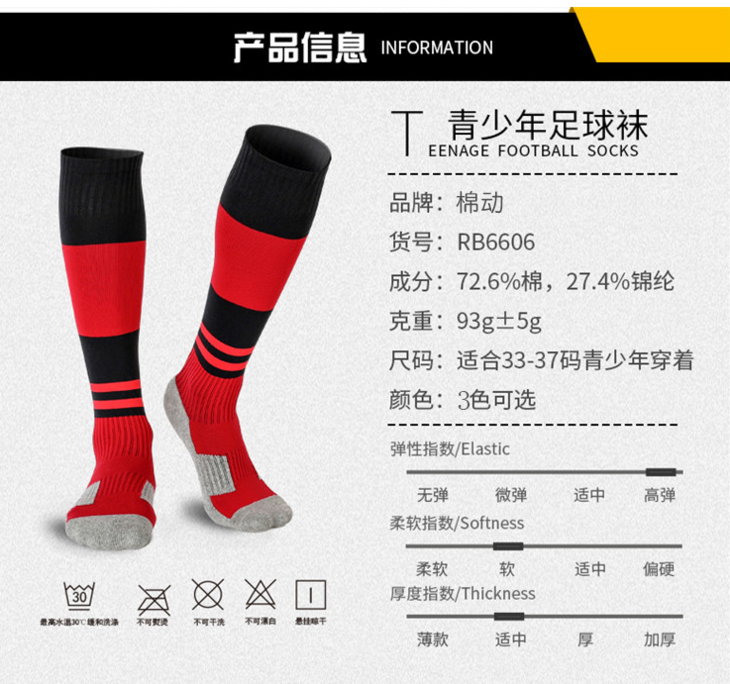 足球袜7-13岁丨【单双6折】足球袜毛巾底 青少年长筒袜子 V823152【1双装】