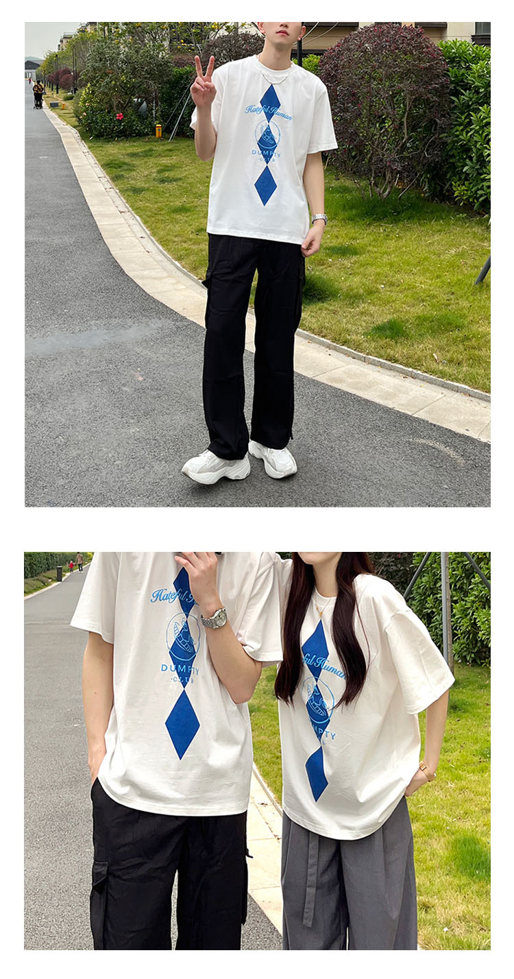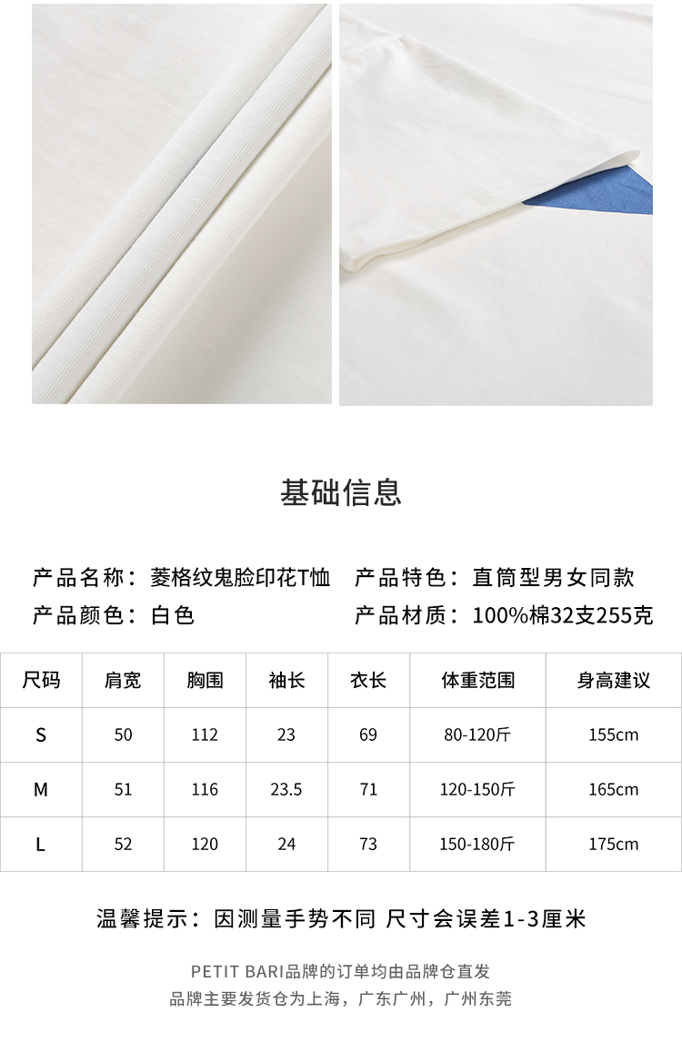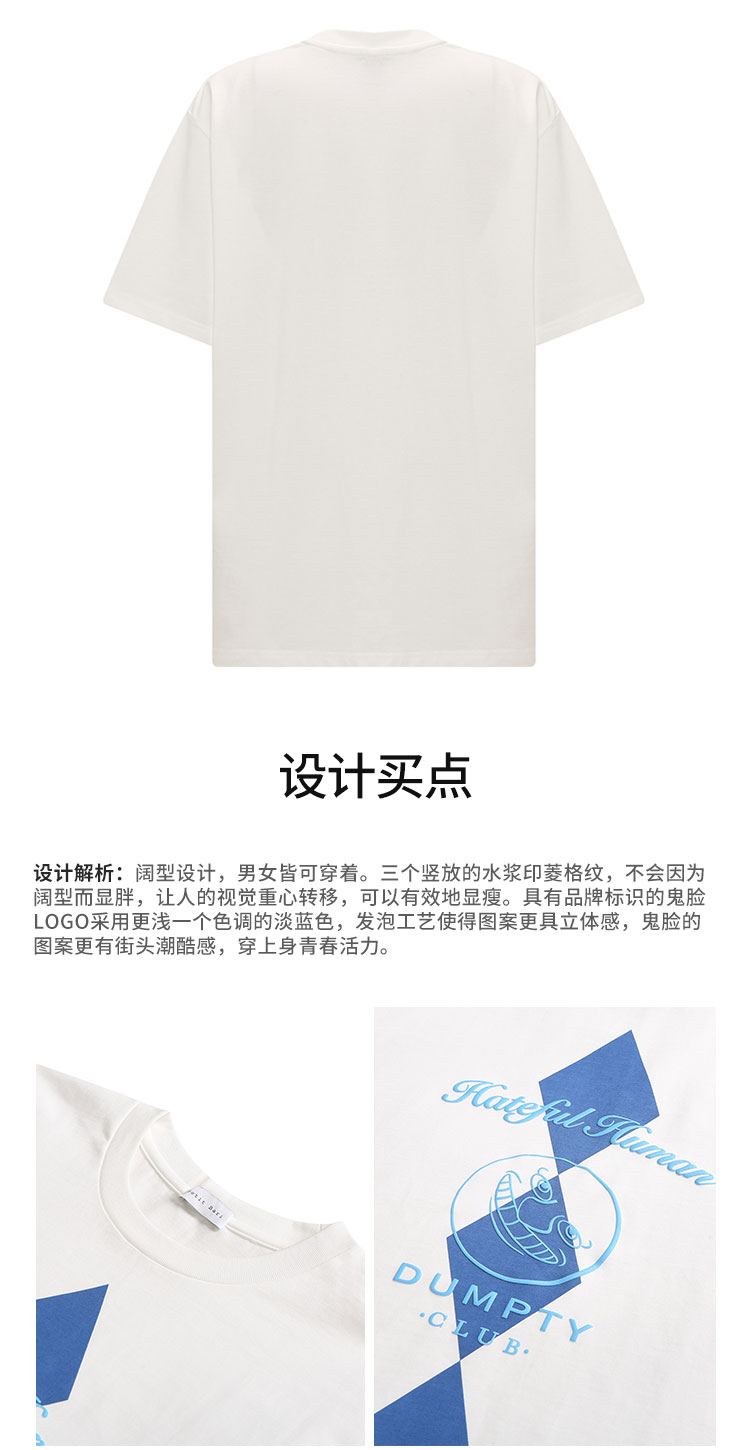 【2件9折】【Petit Bari】菱格纹鬼脸印花短袖T恤 男女同款圆领宽松短T