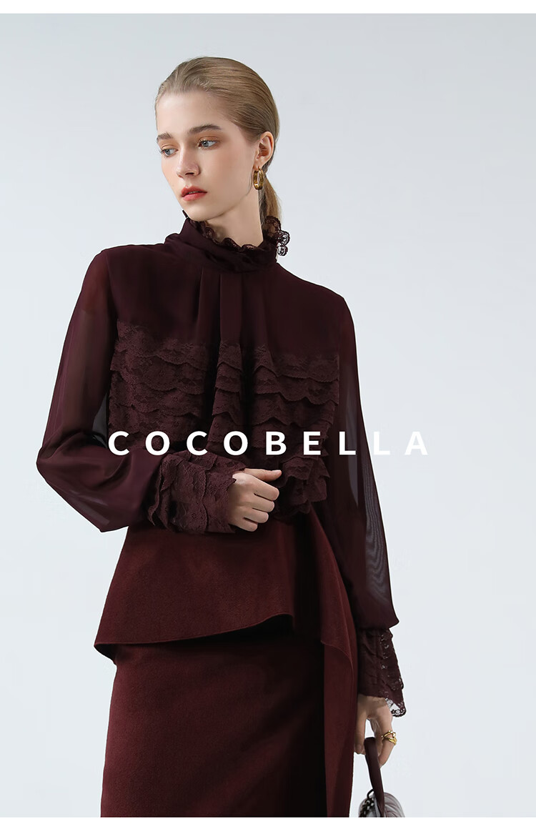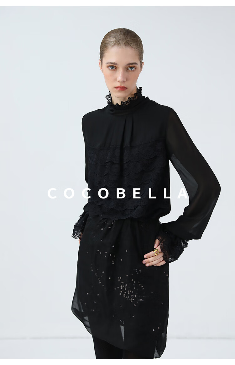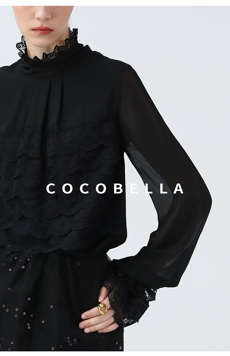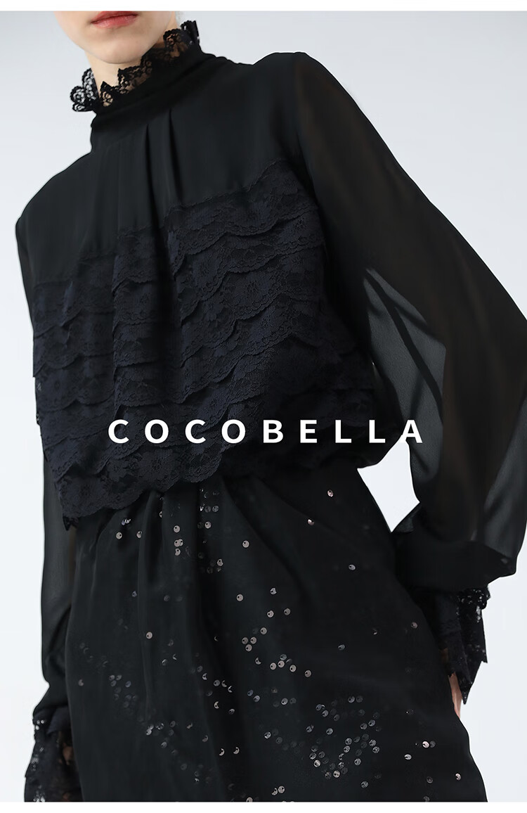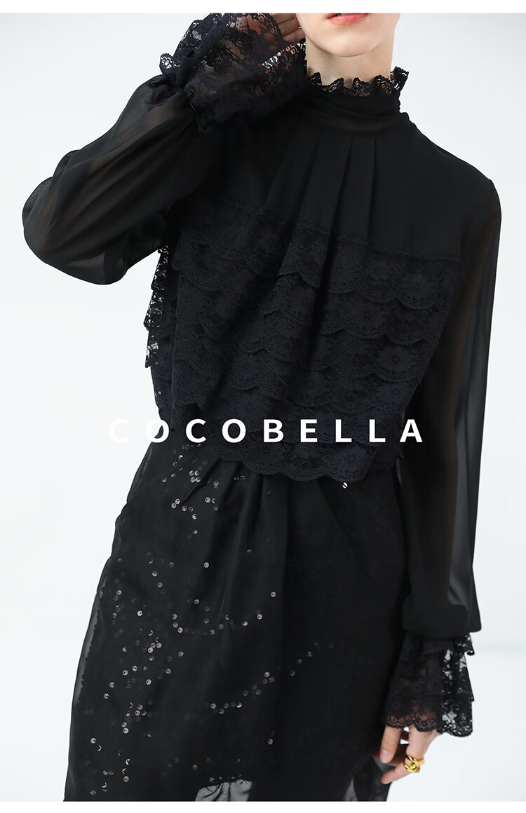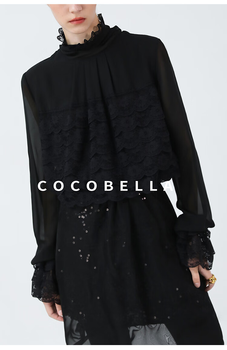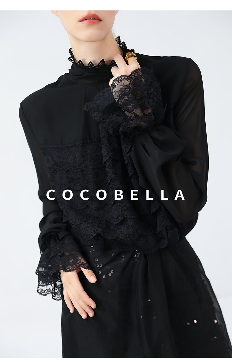 【限时秒杀】COCOBELLA精致女人味优雅多层蕾丝衫赫本风长袖衬衫LC7028-3