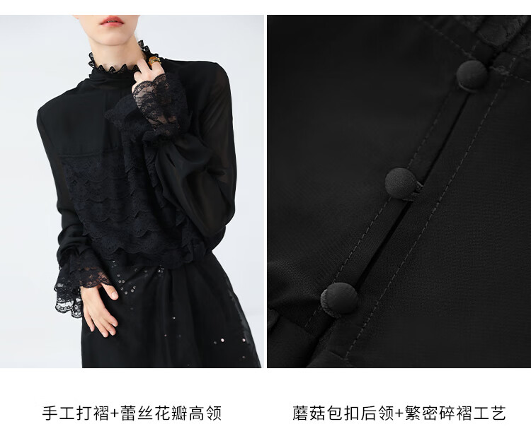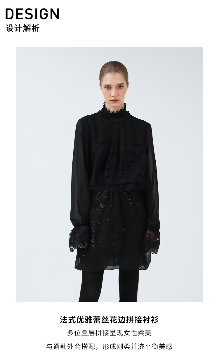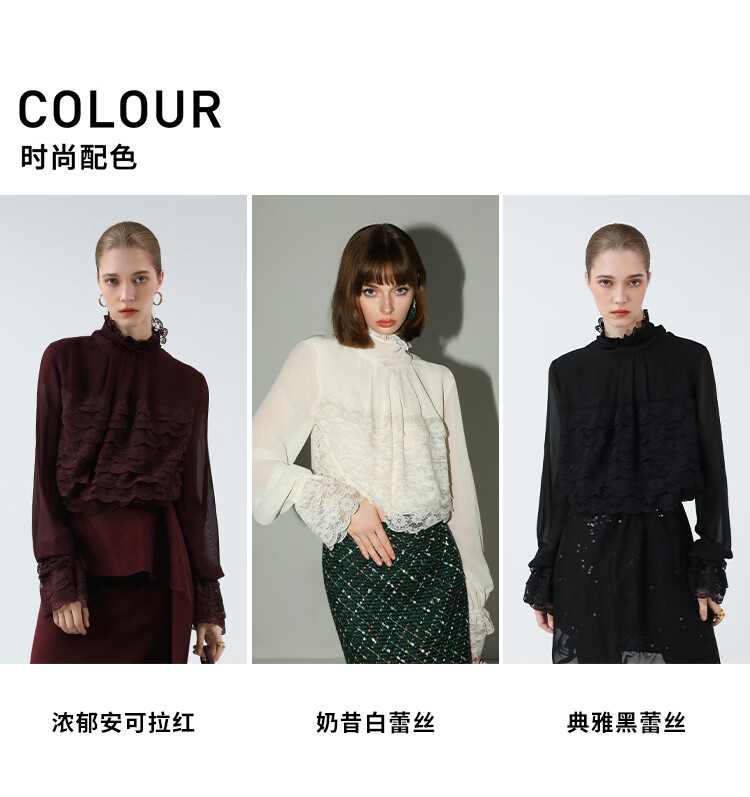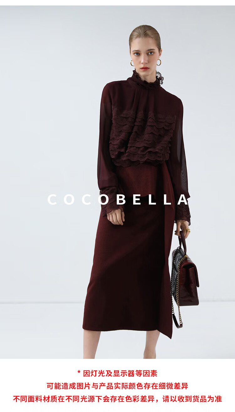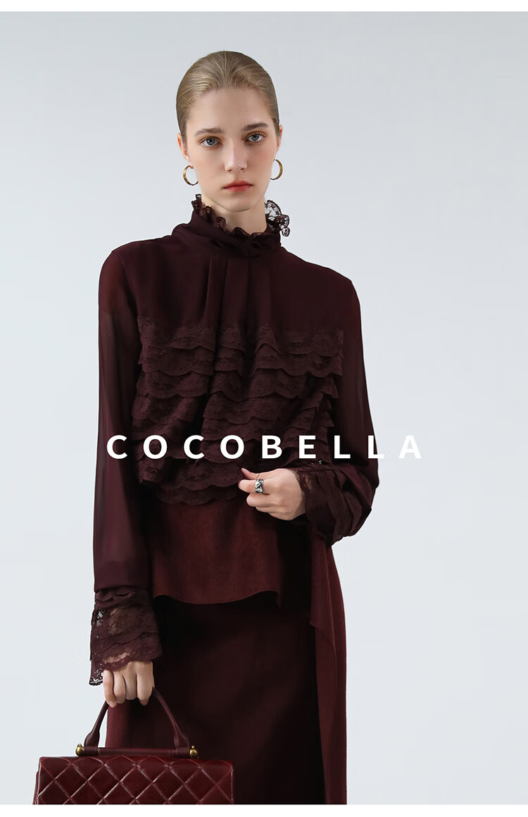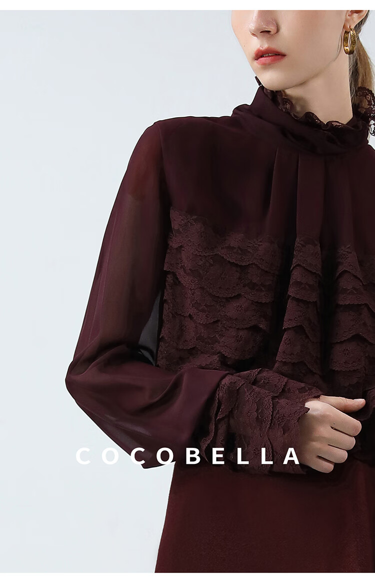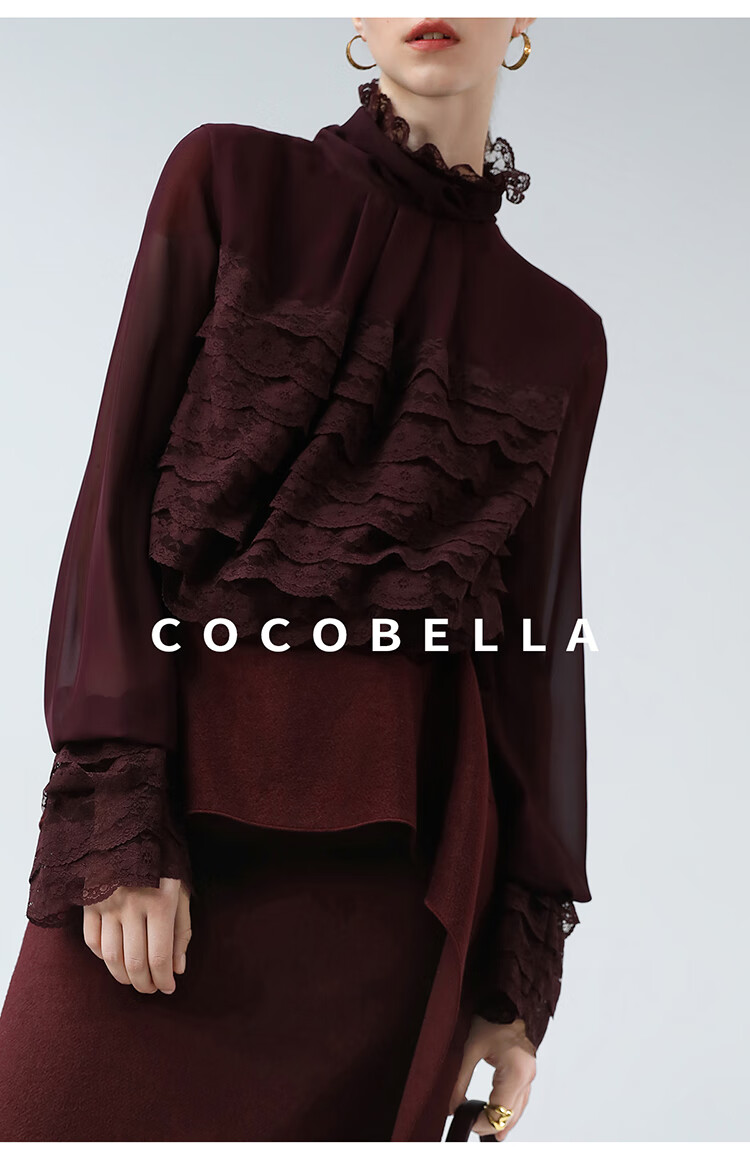 【限时秒杀】COCOBELLA精致女人味优雅多层蕾丝衫赫本风长袖衬衫LC7028-3