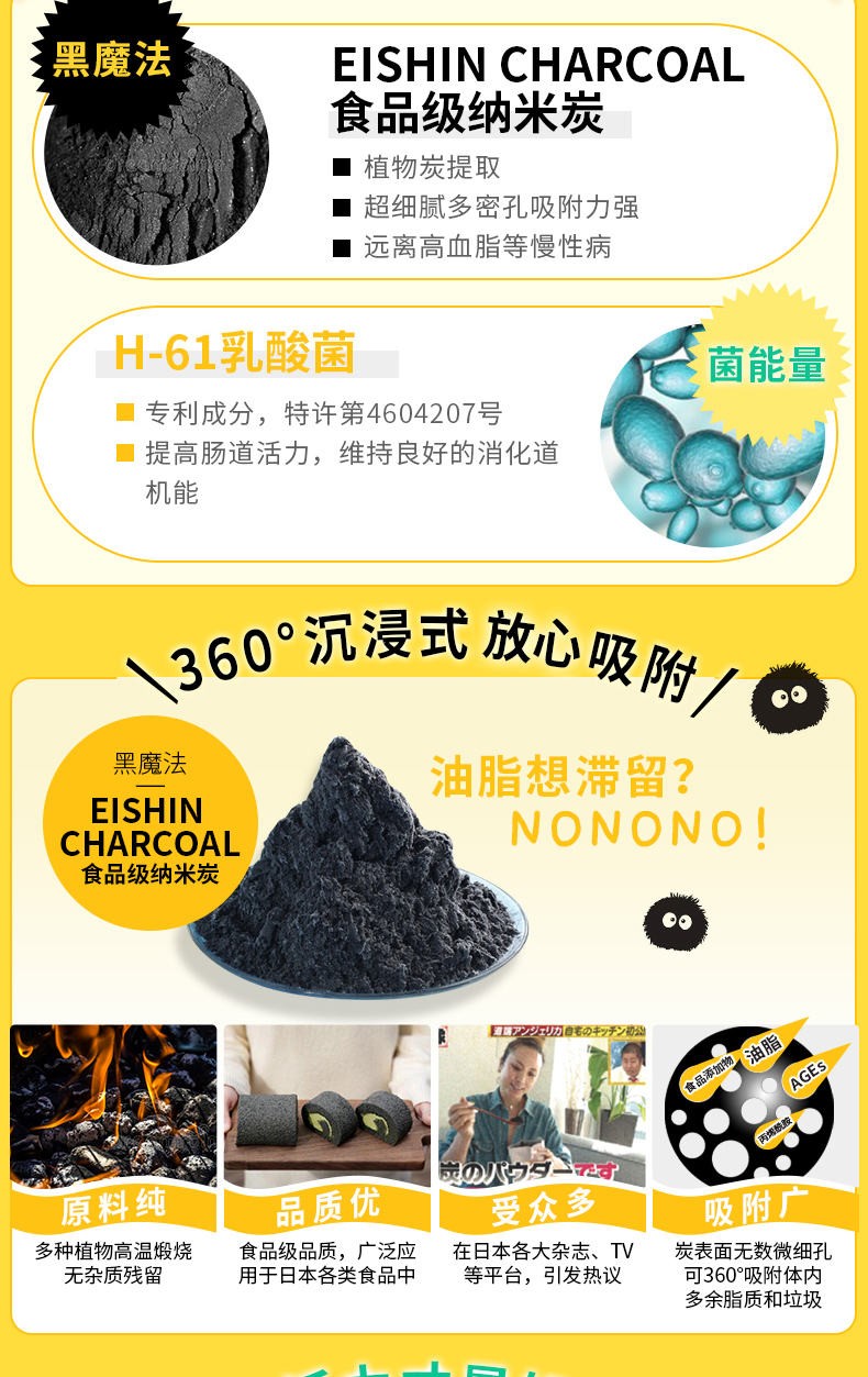 与其他排油丸相比,0yao物0刺激0副作用!吸油力MAX!植物炭与益生菌协同作战,360度吸附肠内多余垃圾,