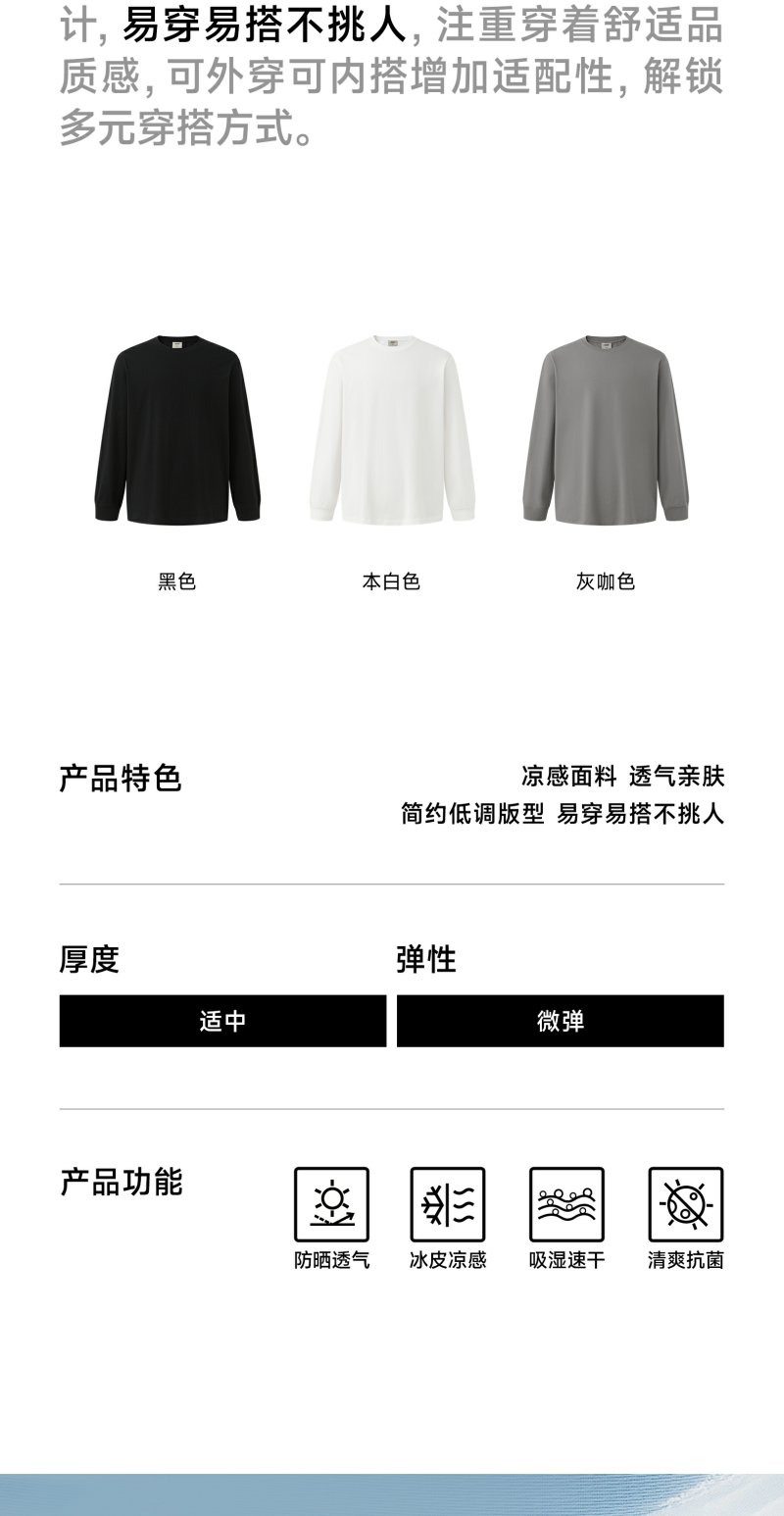 【凉感抑菌】CHINISM赤尘 easy系列 宽松版索罗娜长袖T恤男打底衫