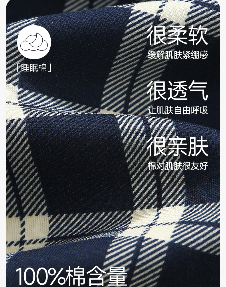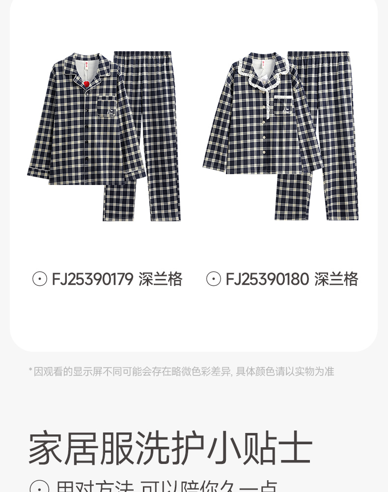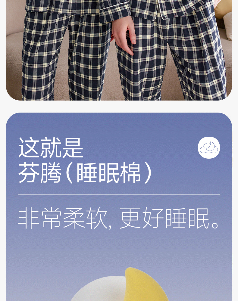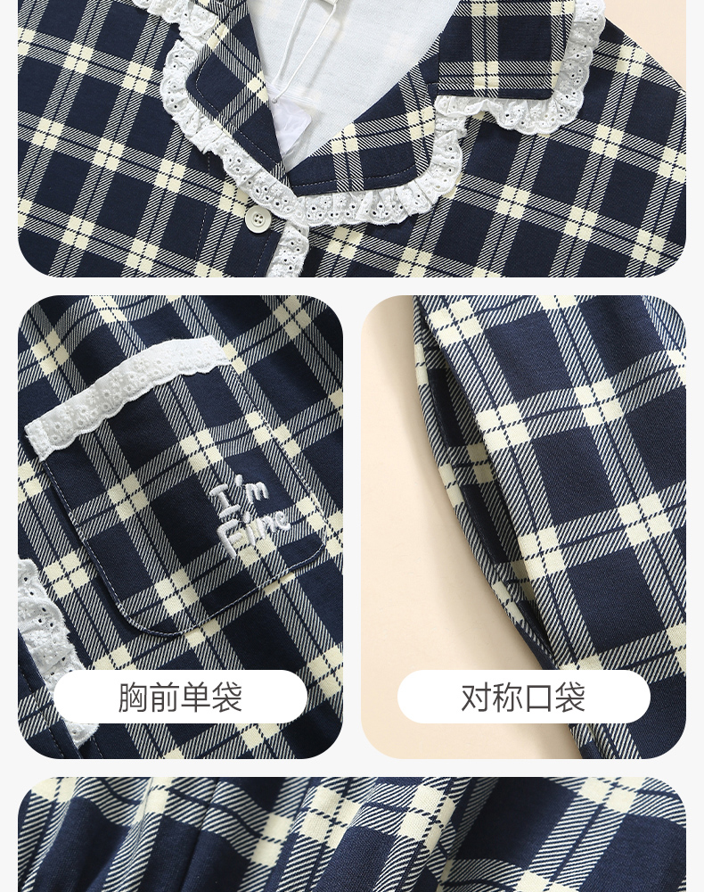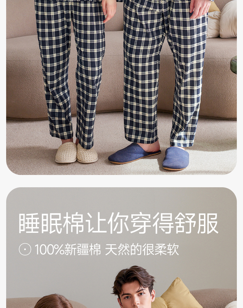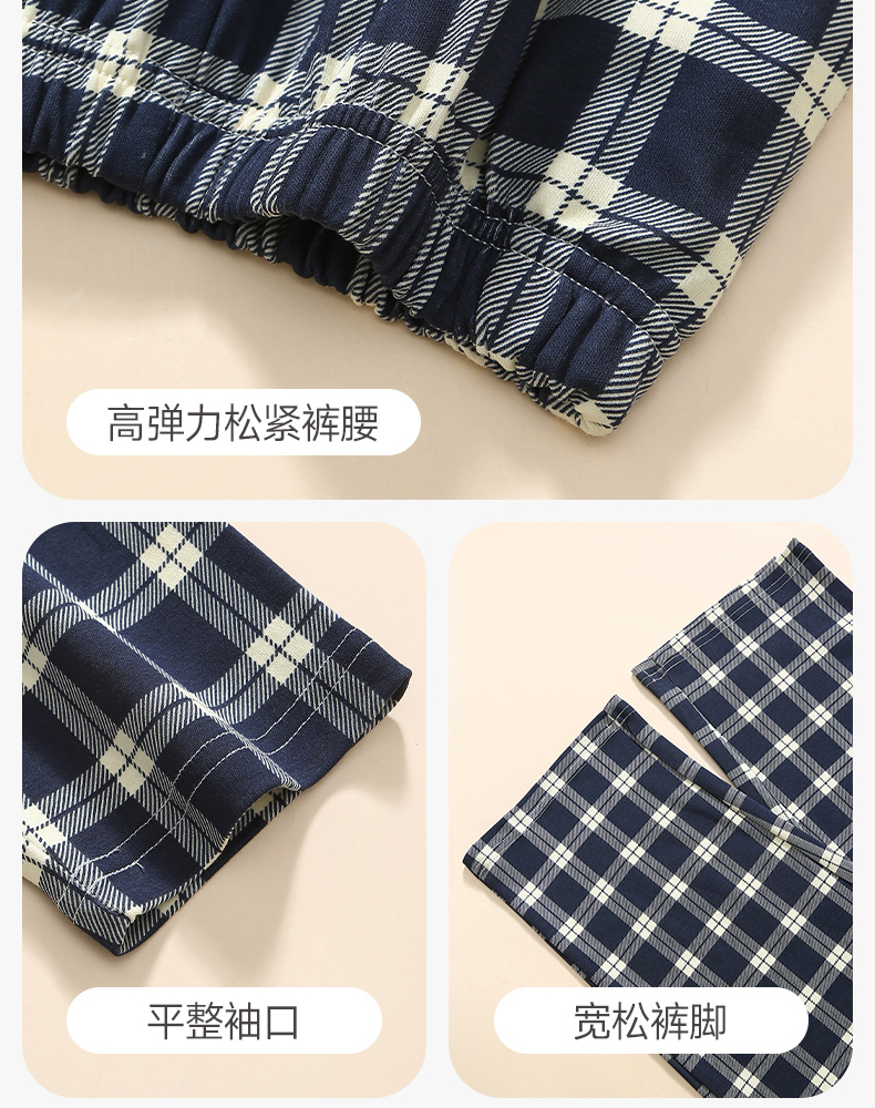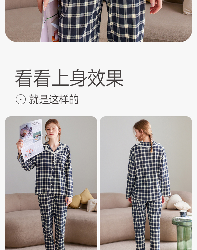 芬腾长袖情侣睡衣春秋季纯棉开衫套装男女格子宽松大码全棉家居服