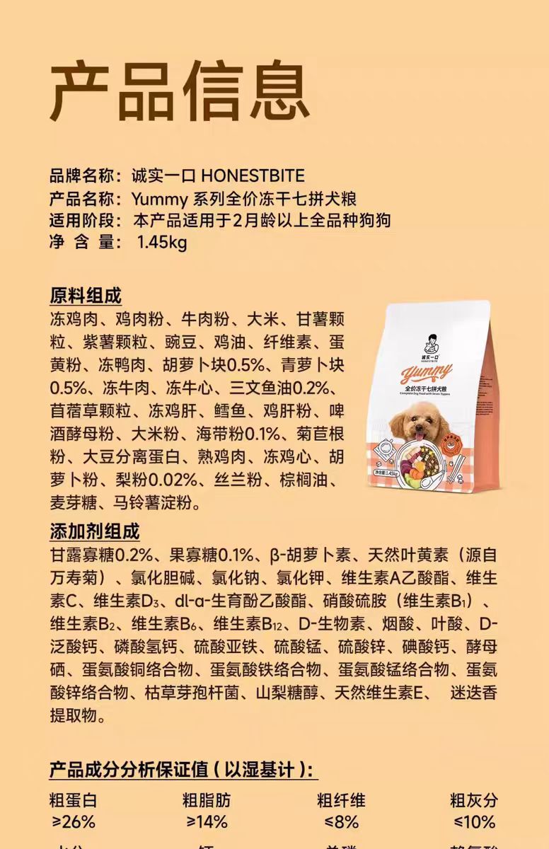 诚实一口 七拼冻干 狗粮 成幼犬通用1.45kg/包