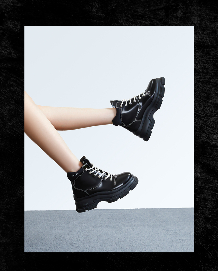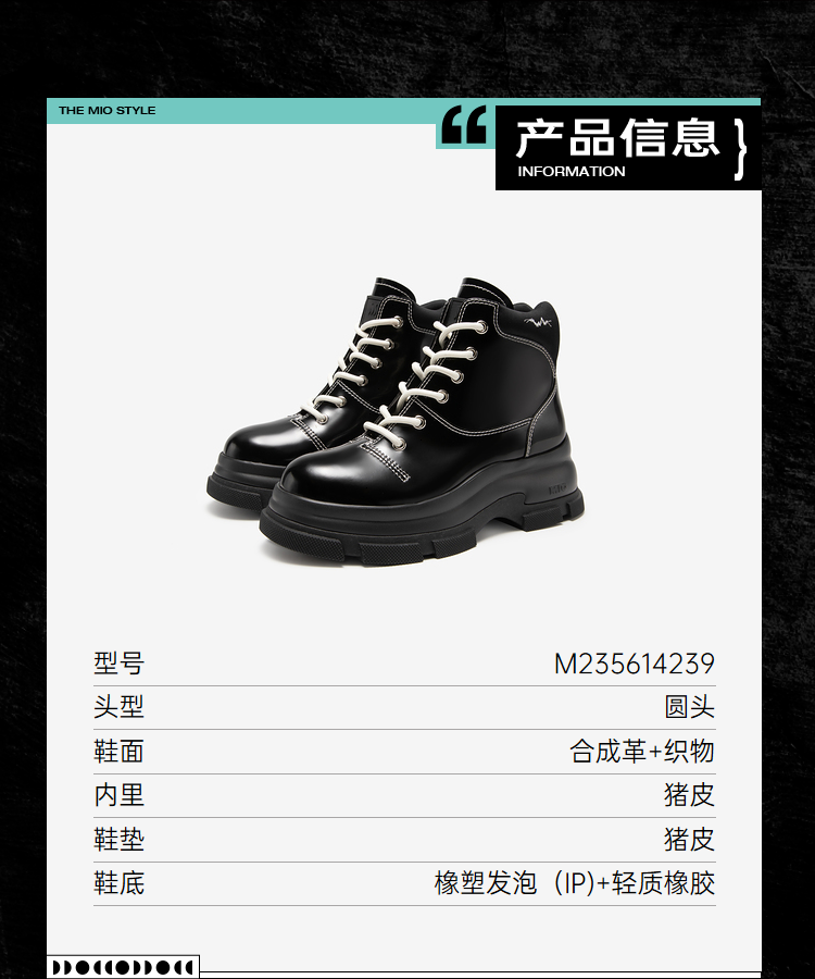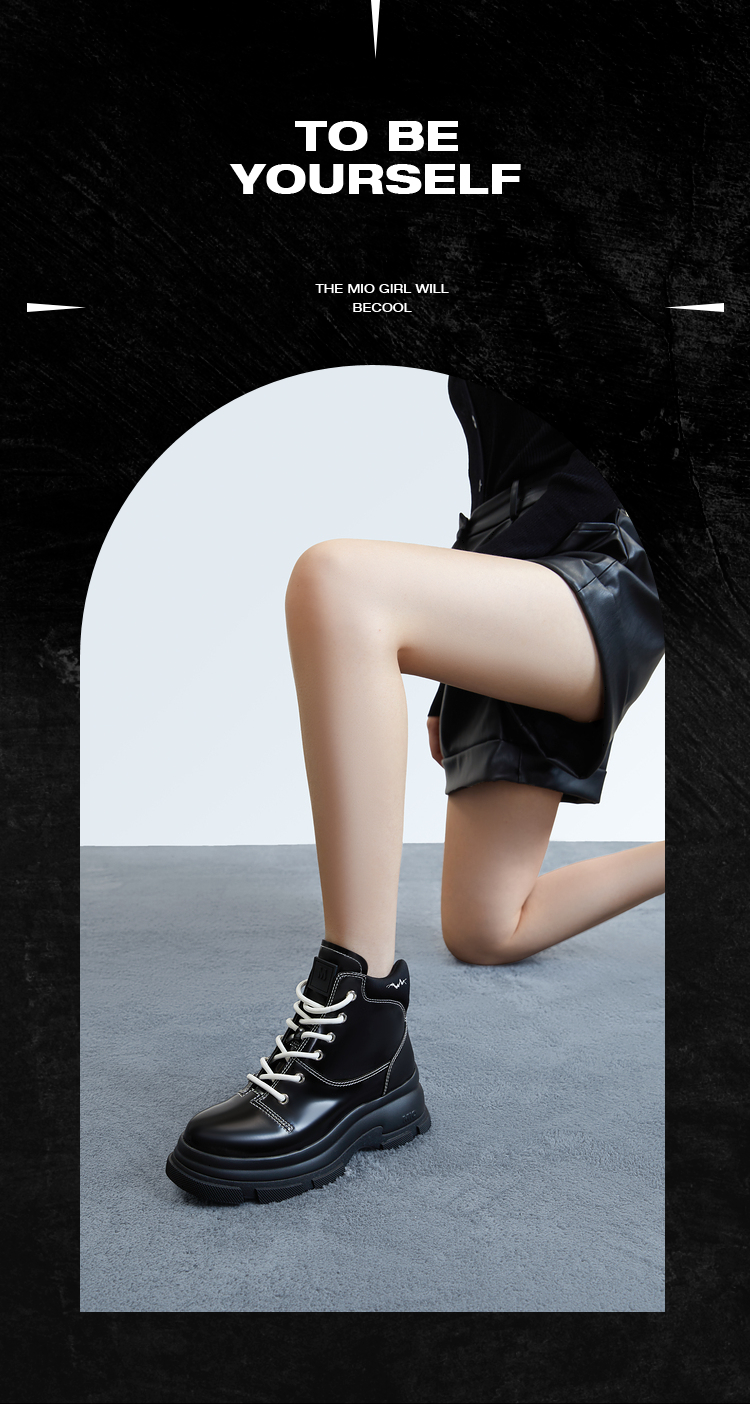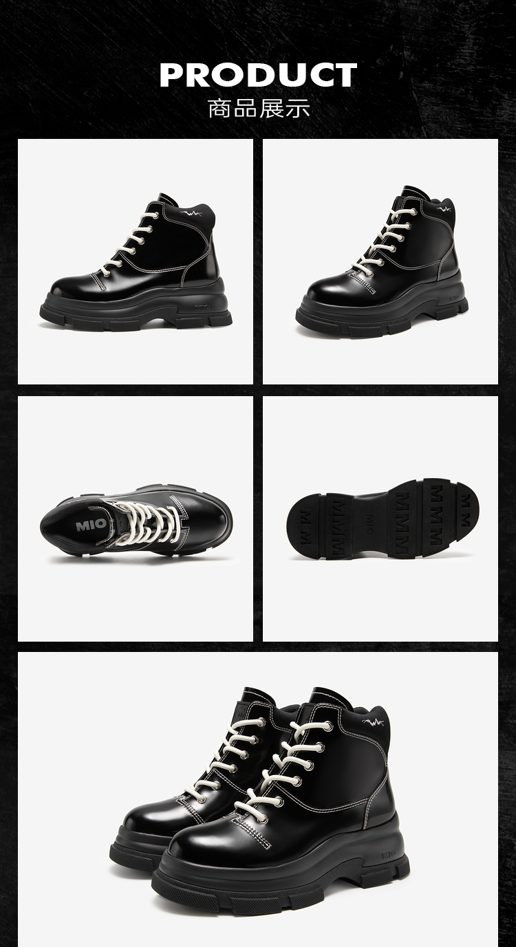 MIO米奥冬季纯色高跟厚底靴子时髦酷飒系带机能马丁靴女靴M235614239