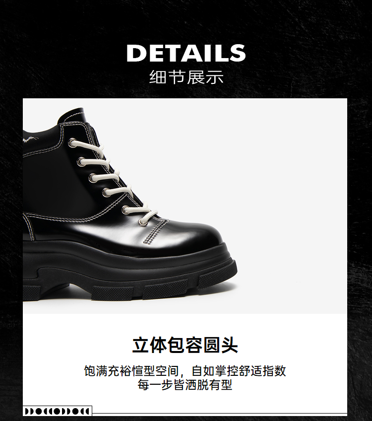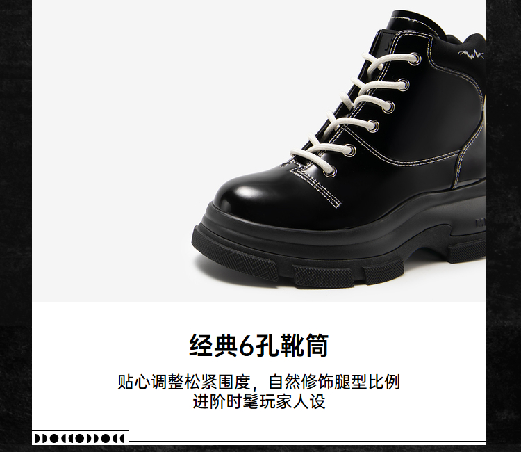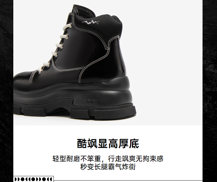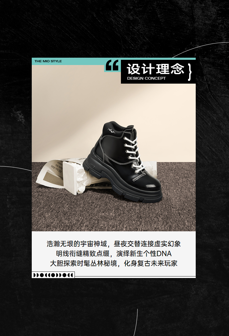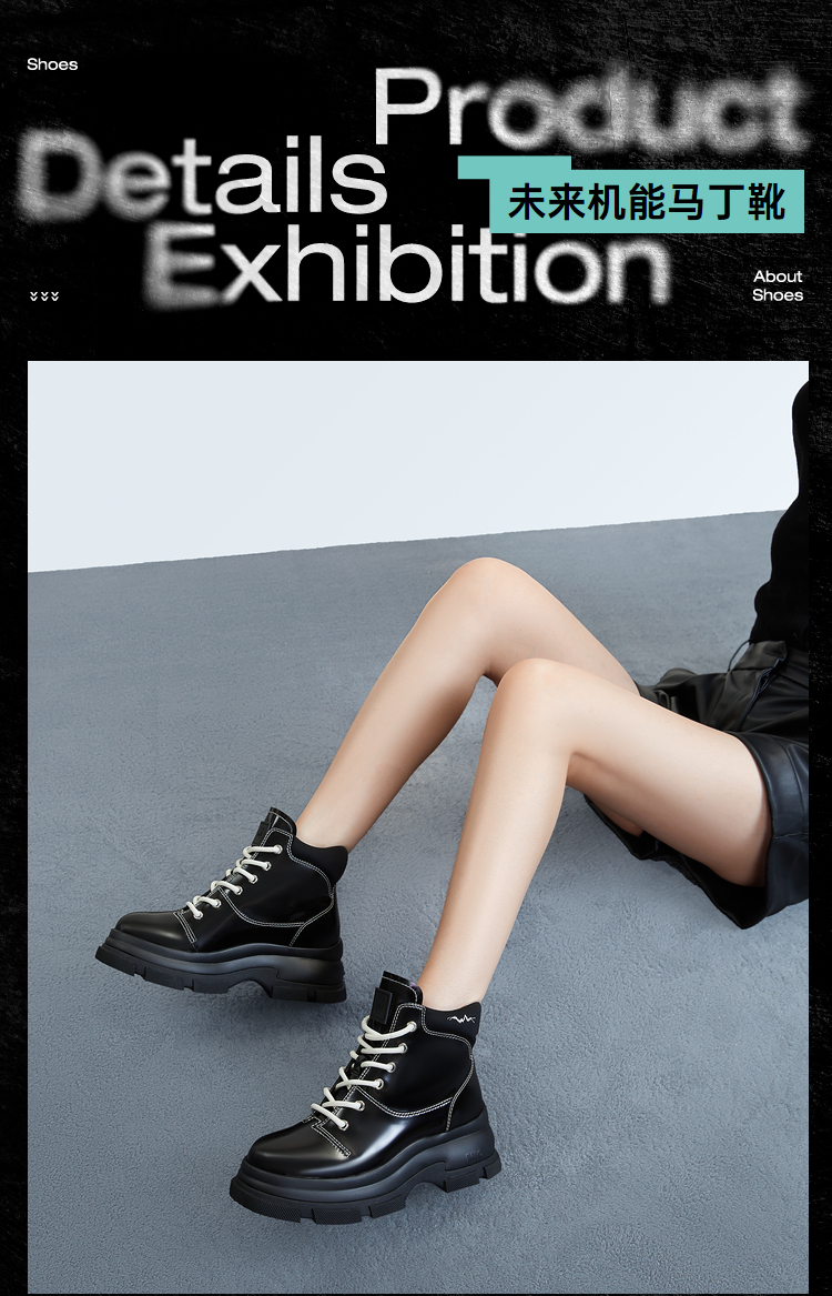 MIO米奥冬季纯色高跟厚底靴子时髦酷飒系带机能马丁靴女靴M235614239