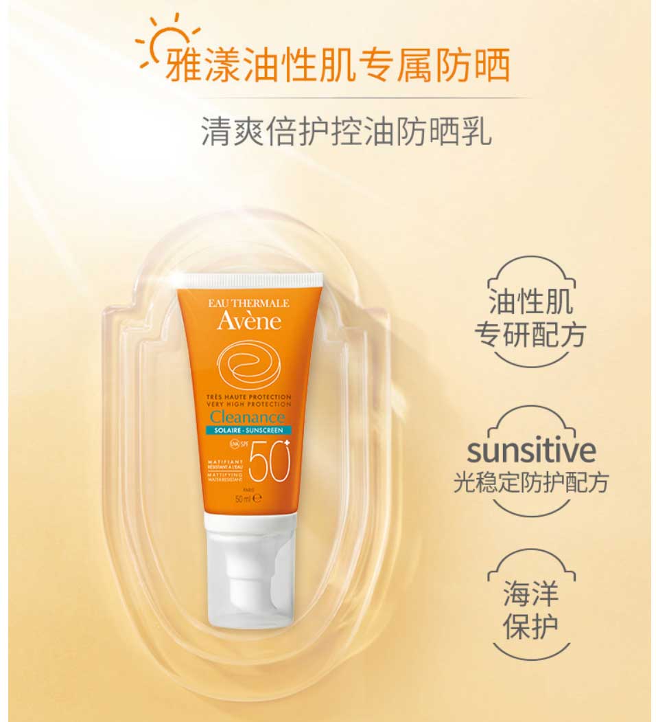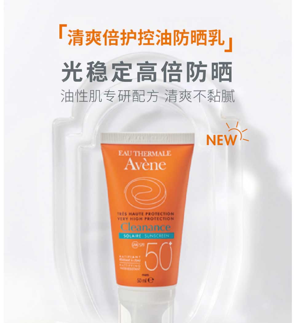 雅漾(Avene)清爽倍护控油防晒乳50ml SPF50+PA++++*2