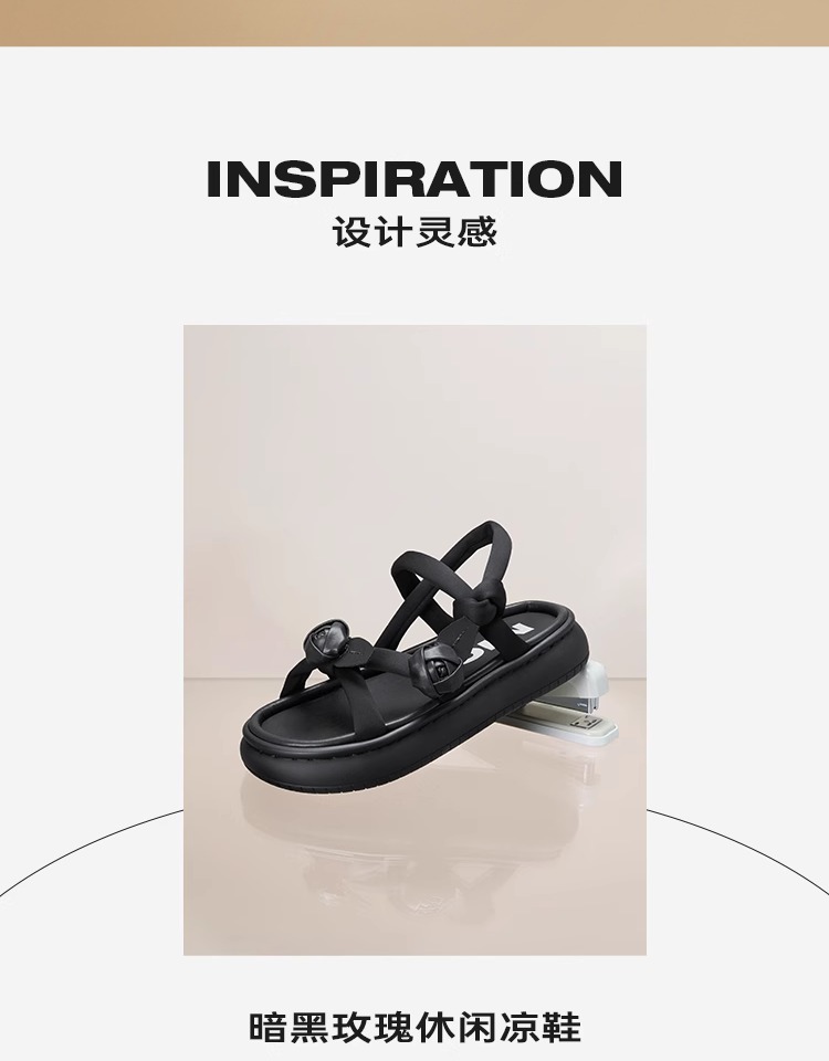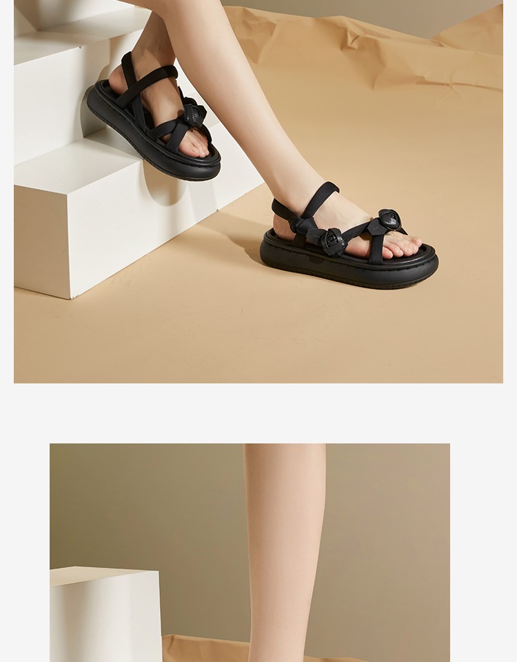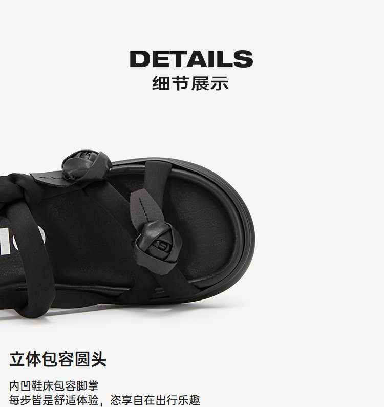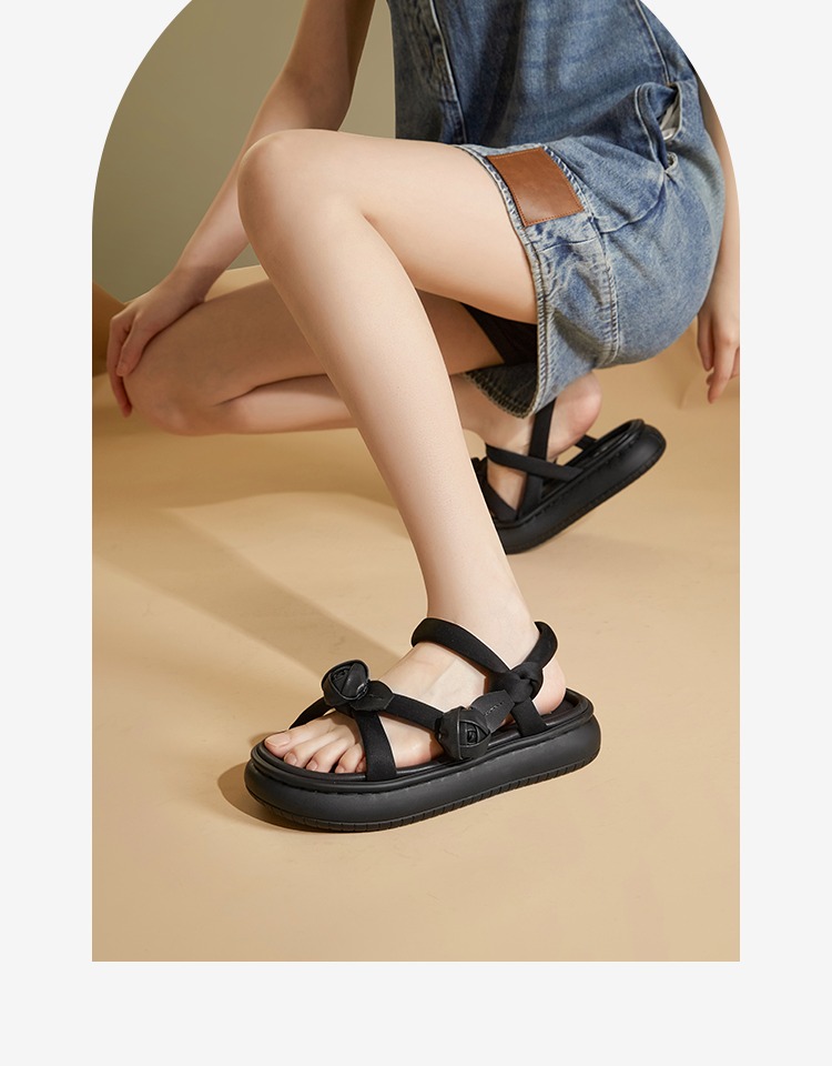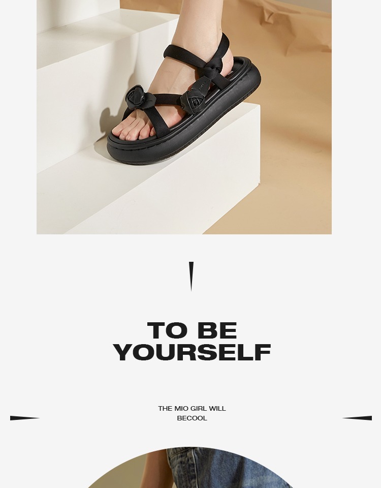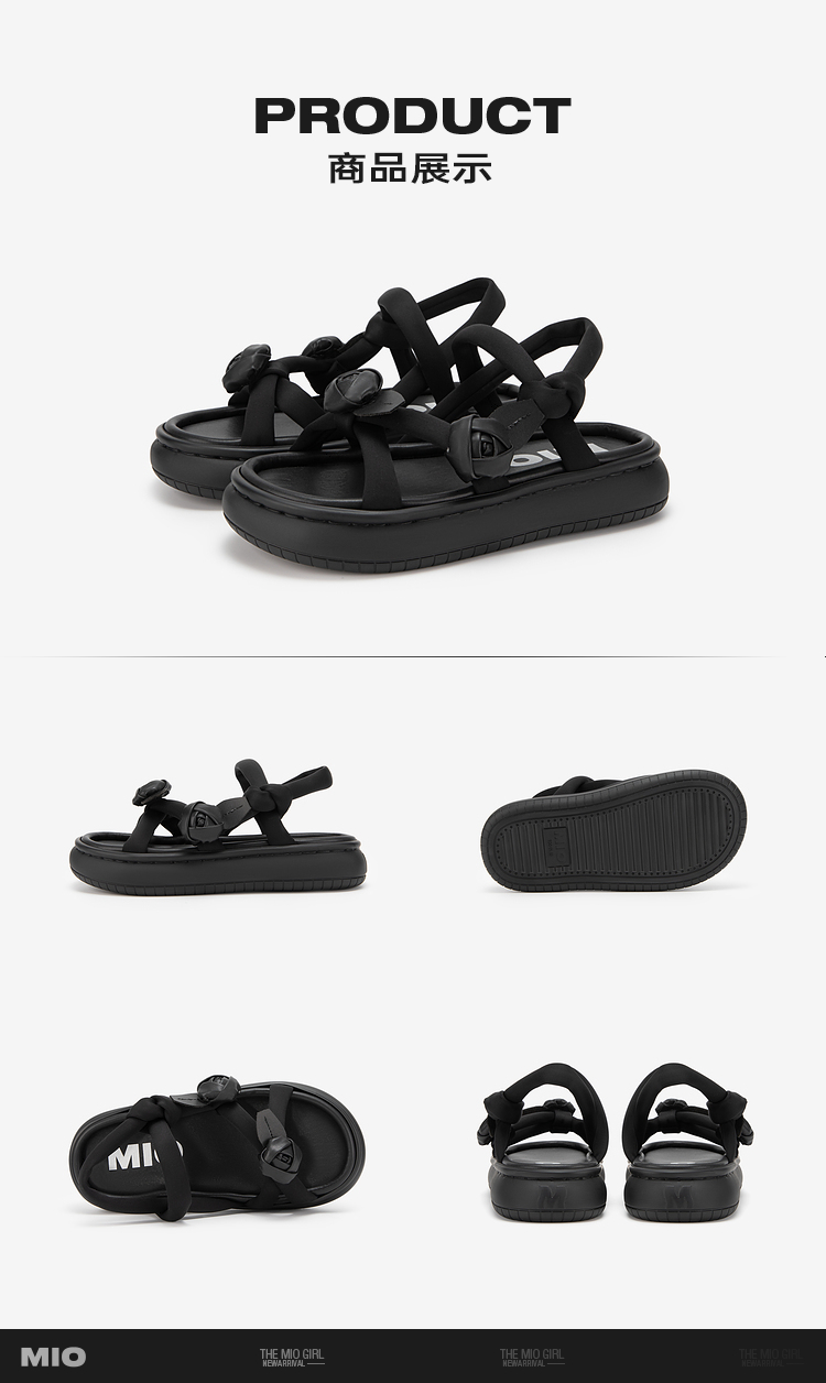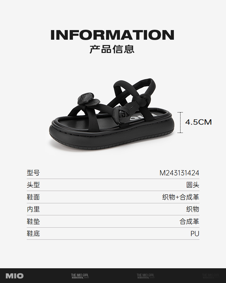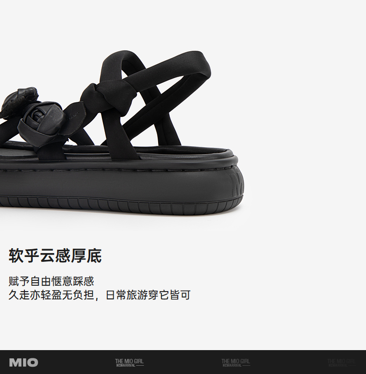 MIO米奥夏沙滩鞋中跟休闲凉鞋蓬软扭结云感厚底通勤凉鞋女M243131424