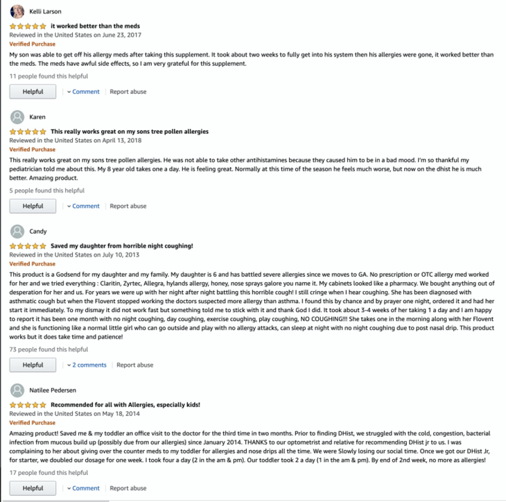 惊人的产品! 在两个月内第三次为我和我的孩子免去了一次去医生的诊所访问的时间。 自从2014年1月以来,在找到DHist Jr之前,我们一直在处理粘液引起的感冒,充血和细菌感染(可能是由于过敏引起的)。感谢我们的验光师和亲戚向我们推荐D Hist jr。 我向她抱怨要一直给我的小孩服用非处方药以防止过敏和滴鼻。 我们正在慢慢地失去社交时间。 一旦我们得到了DHist Jr,对于第一次用的人来说,我们将剂量加倍一周。 我一天花了四天(上午和下午两点)。 我们的孩子每天花2天(上午和下午1天)。 到第二周结束时,不再有过敏反应!