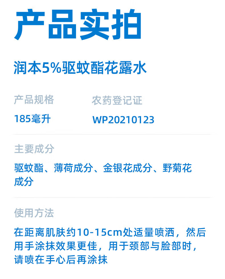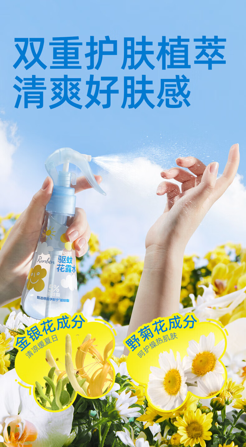 润本5%驱蚊酯驱蚊花露水185ml(林中漫步)自动持续喷雾/瓶