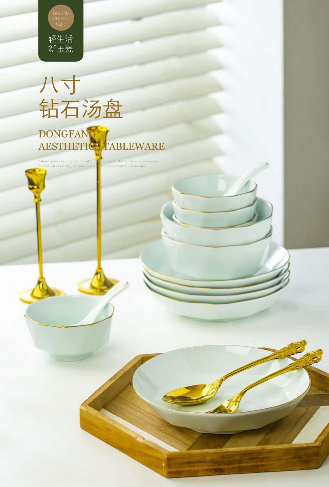 28头钻石配置:6个4.5碗,6小勺,6个盘,6个骨碟,6寸面碗2个,汤碗1个,大勺1个