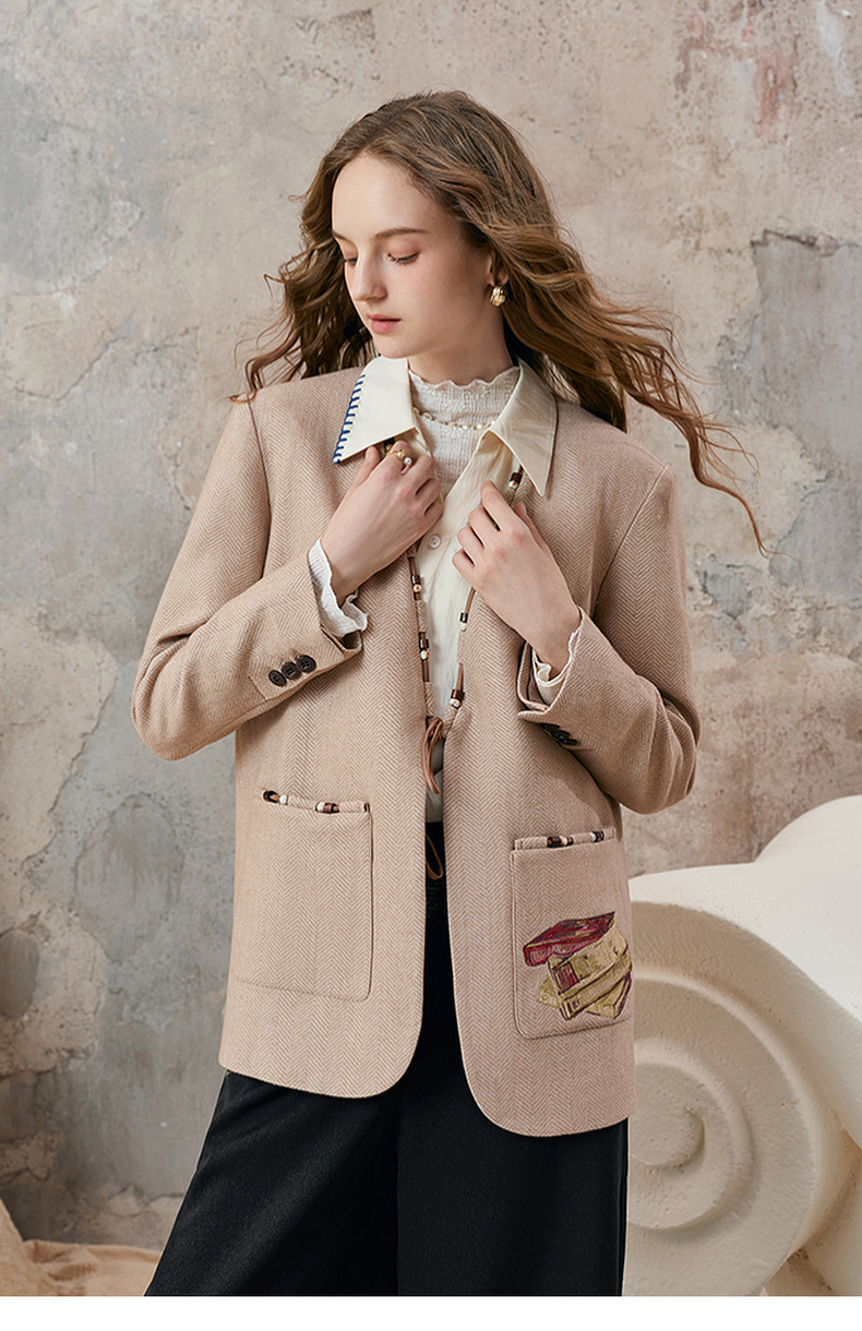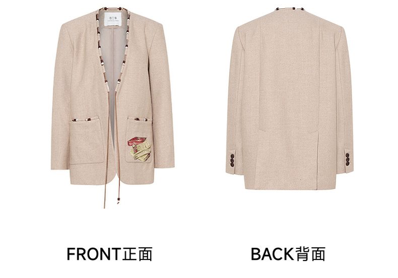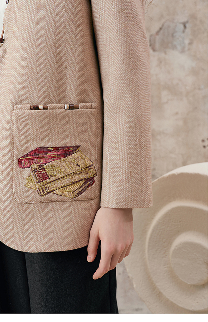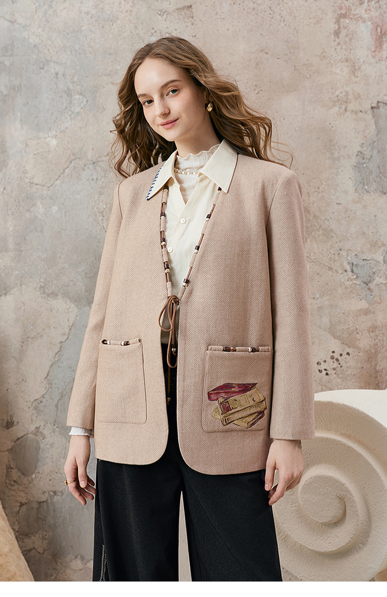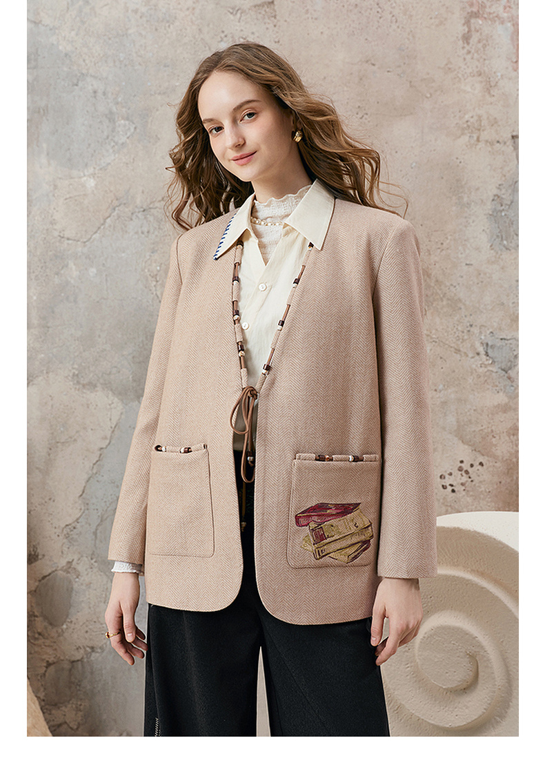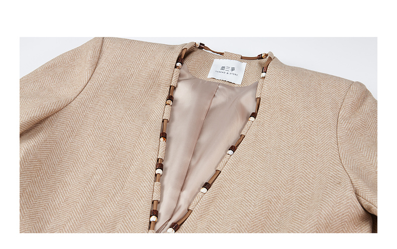 【暖冬内购】两三事 琥珀柔光 2025秋冬新款复古串珠绑带刺绣口袋毛呢外套女