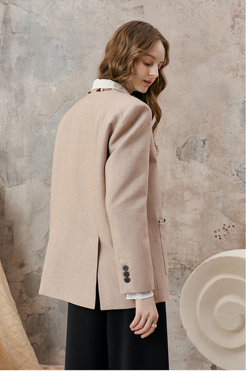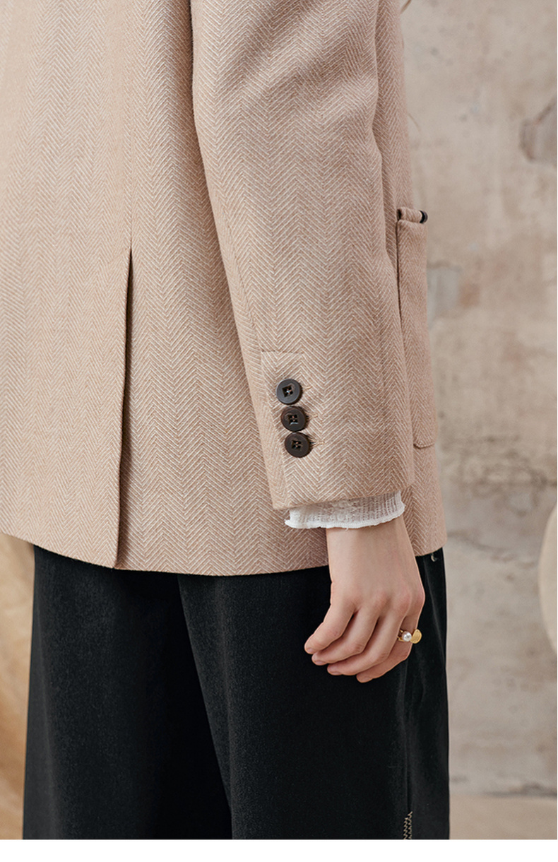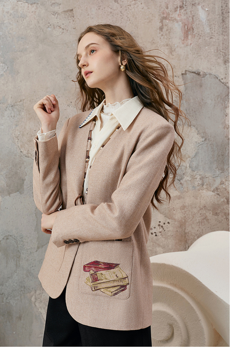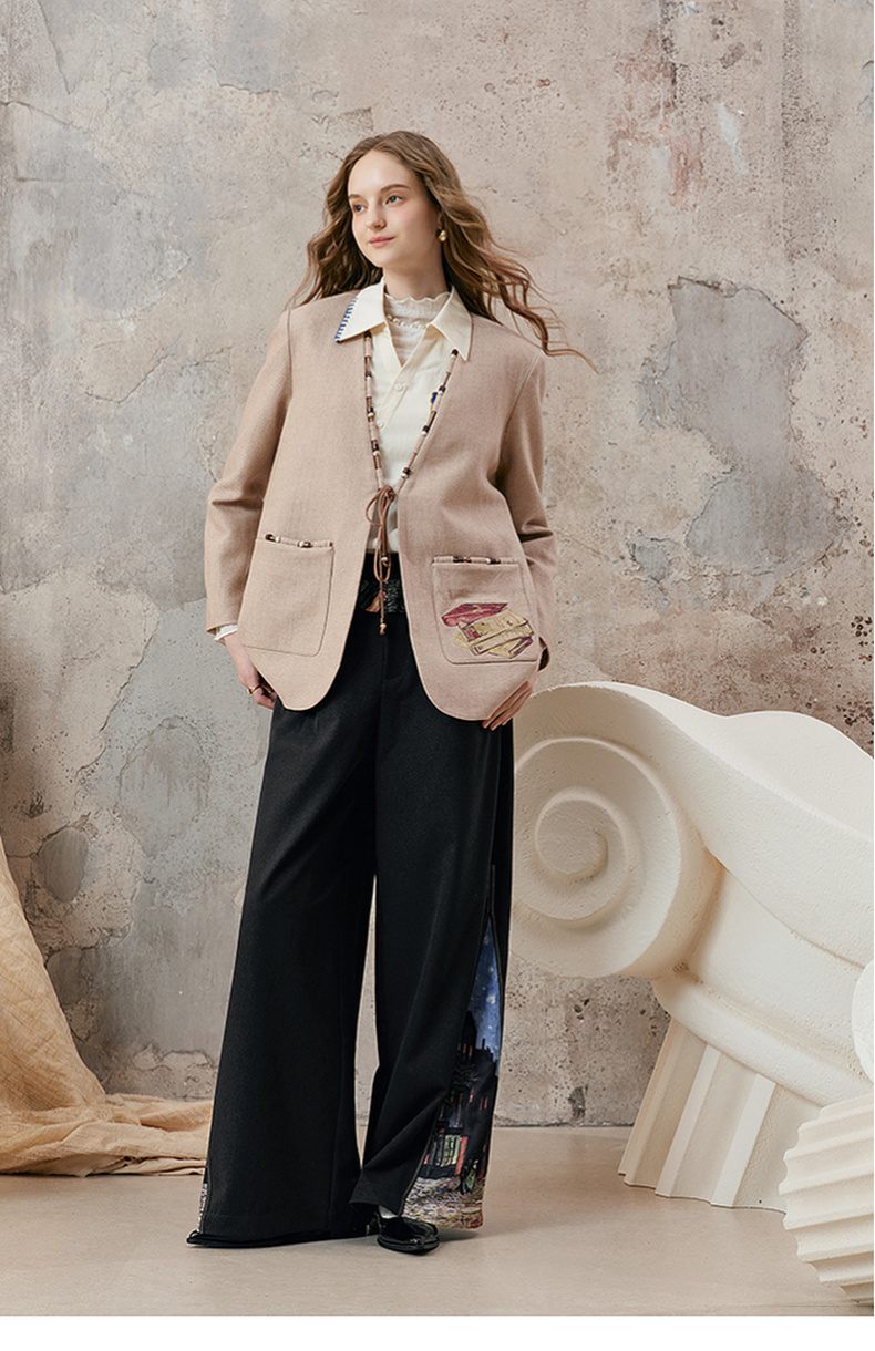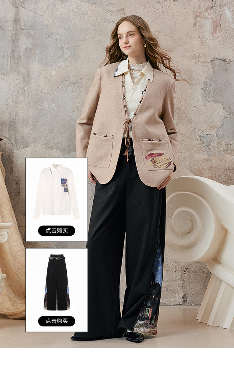 【暖冬内购】两三事 琥珀柔光 2025秋冬新款复古串珠绑带刺绣口袋毛呢外套女