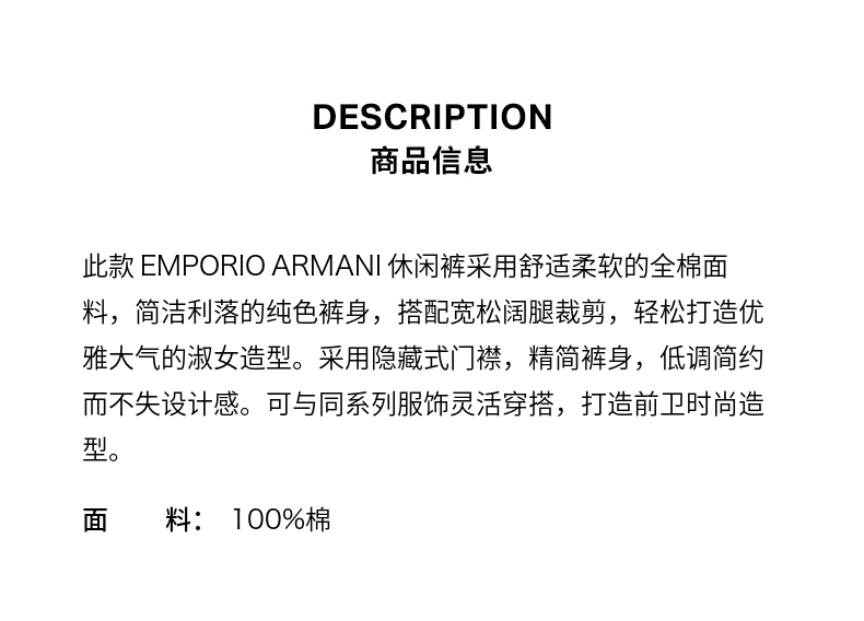 E ARMANI 裤女 3D2P722NT0Z-0905 夜蓝色.