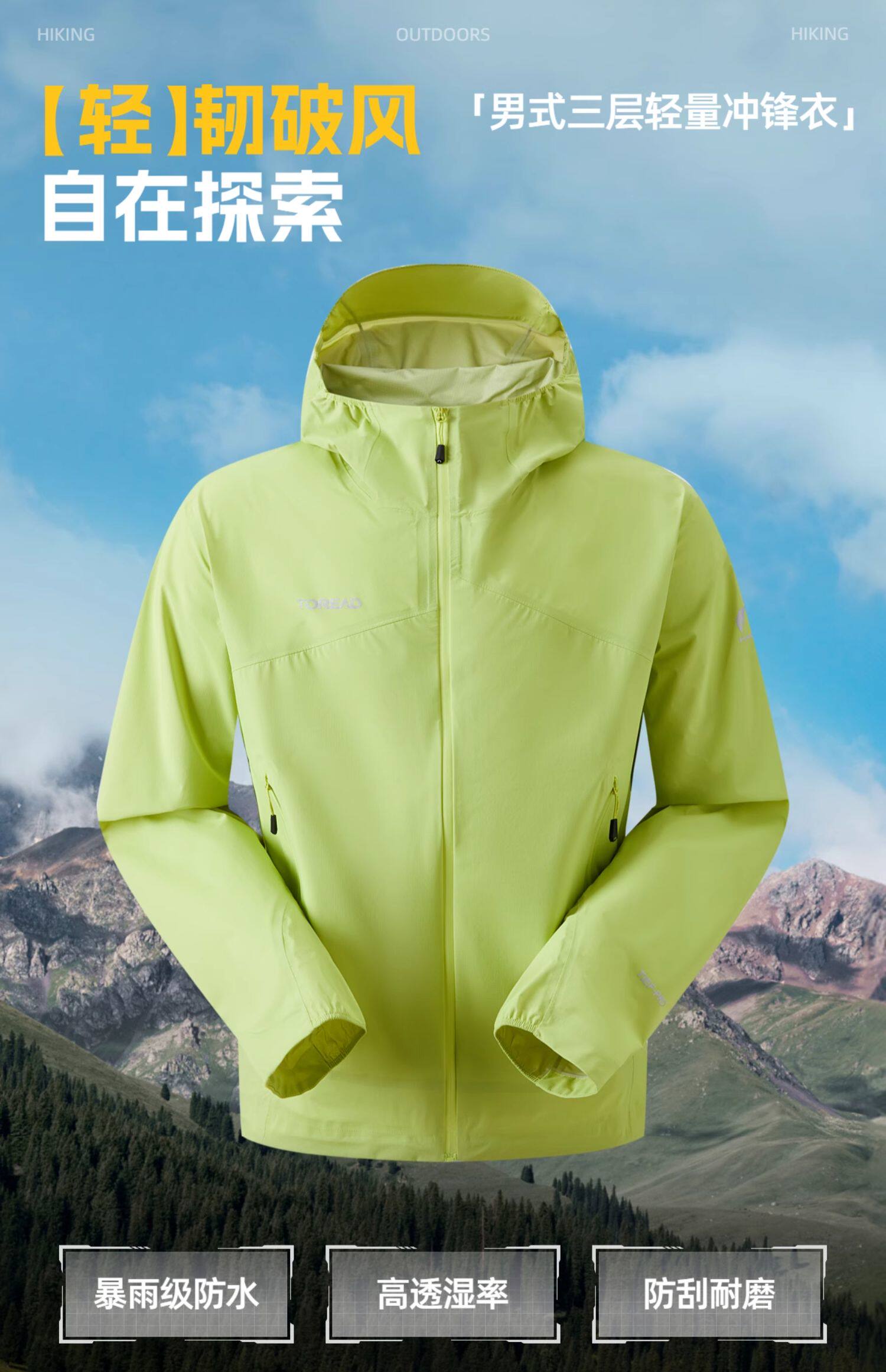 探路者男式三层轻量冲锋TABBAN81003