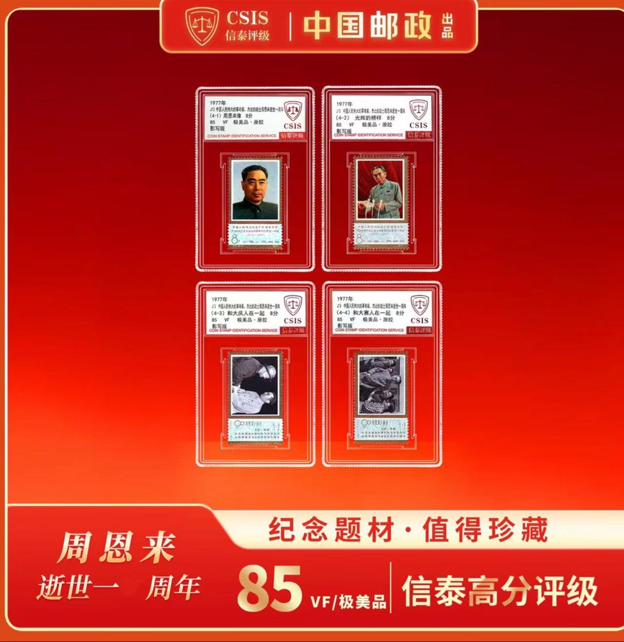 1977年 J13 中国人民伟大的革命家、杰出的战士周恩来逝世一周年 套票(一套4枚)小盒 85分