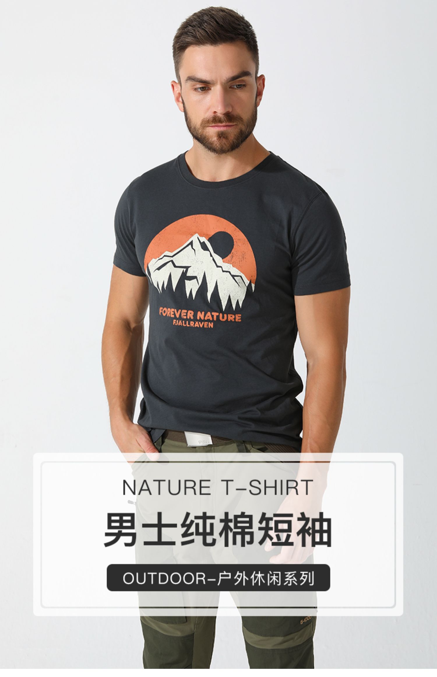 北极狐男士纯棉透气舒适多色露营柔软短袖T恤87053