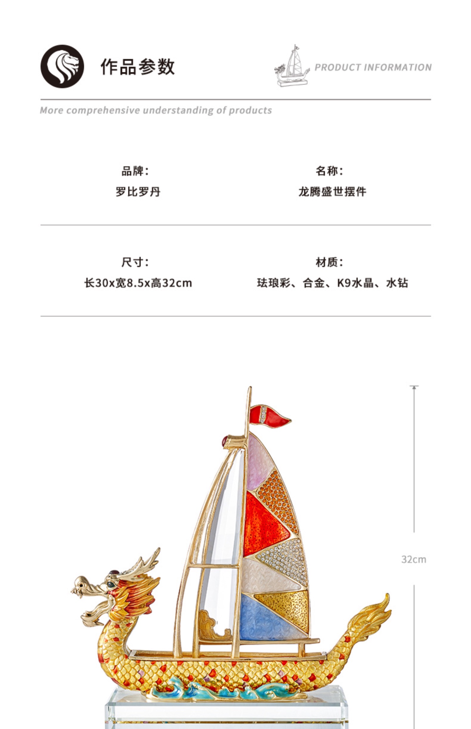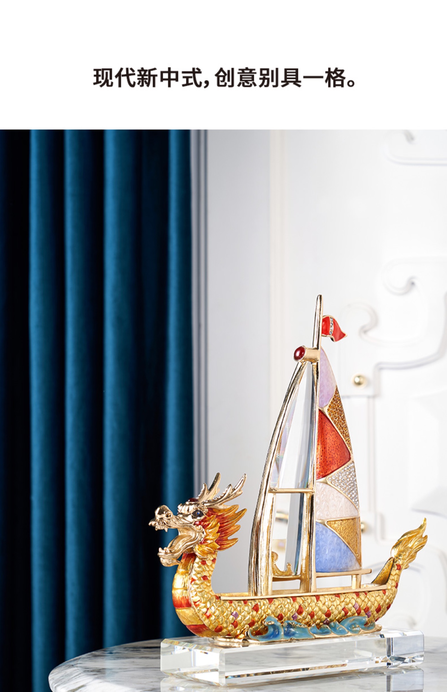 罗比罗丹《龙腾盛世》摆件创意帆船一帆风顺龙船饰品开业礼品