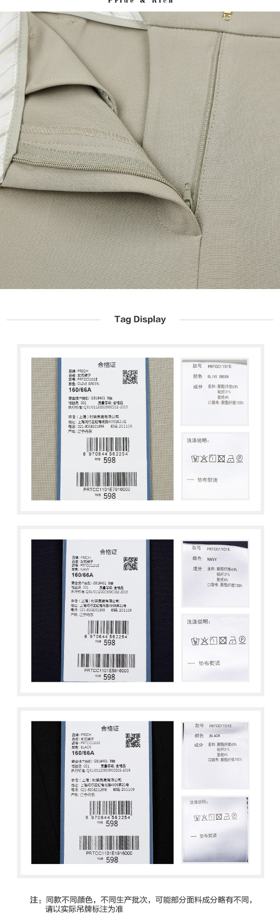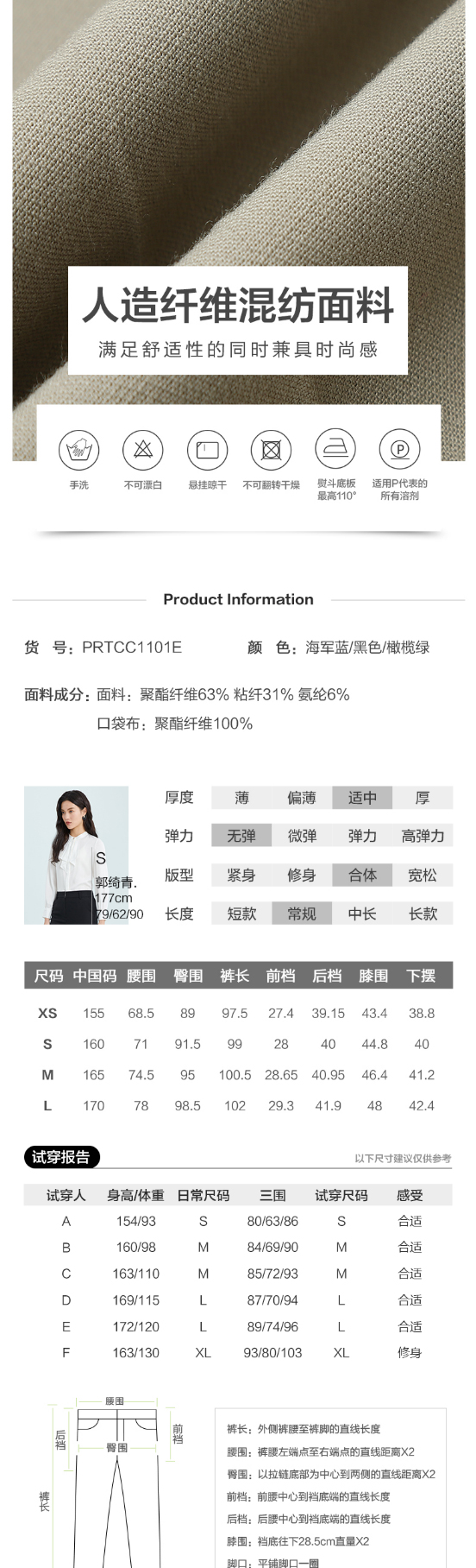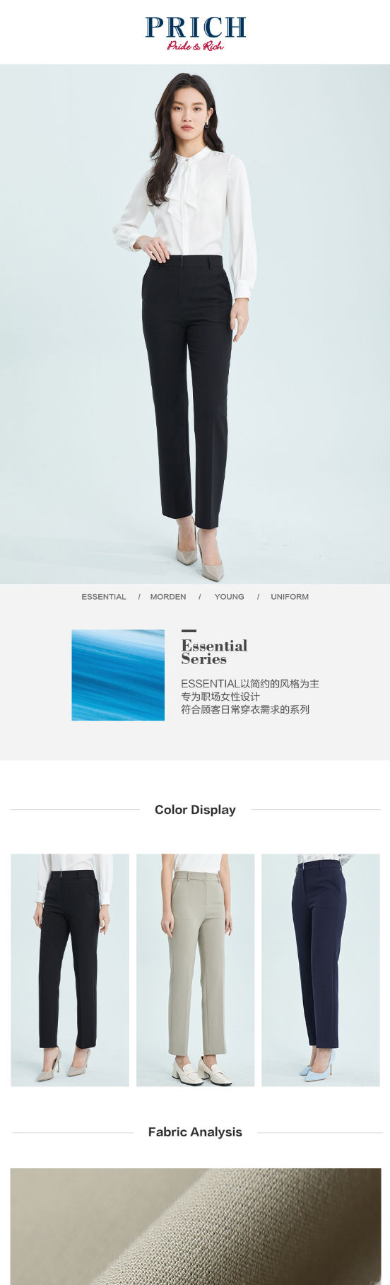 PRICH2022年春季新款气质高腰显瘦直筒职场正装西装裤子PRTCC1101E