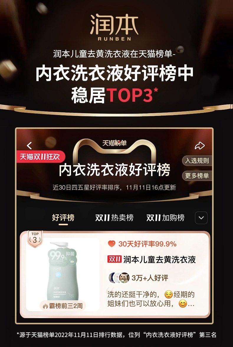 【99.9%抑菌】儿童配方,孕妇、婴儿、学生党必囤去姨妈渍、尿黄渍真的绝!升级500ml量贩装一泵解决👙清洁难题两大瓶【润本内衣专用洗衣液】