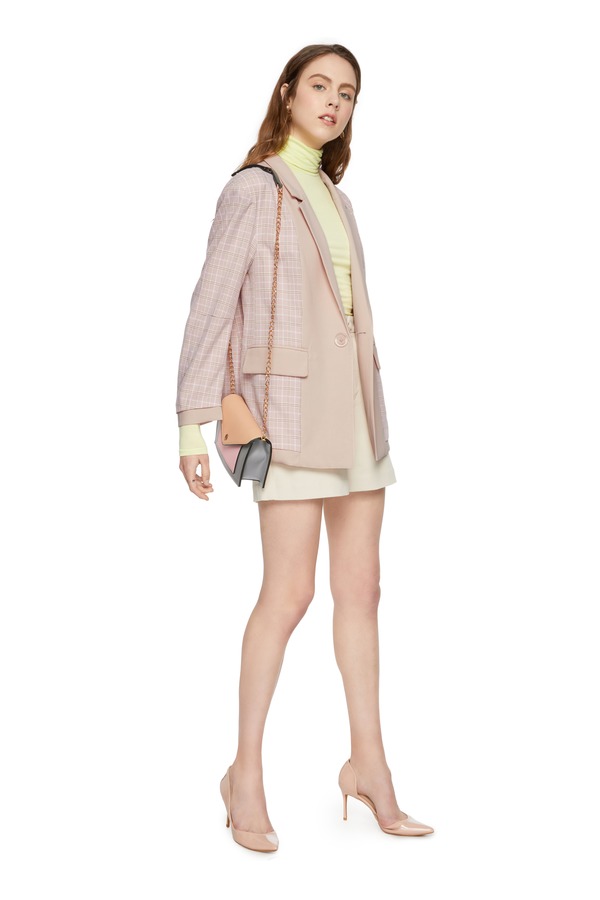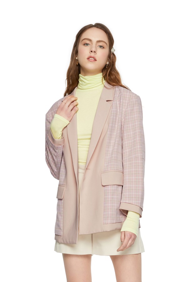 LNNNS 格纹拼接西装外套 6406
