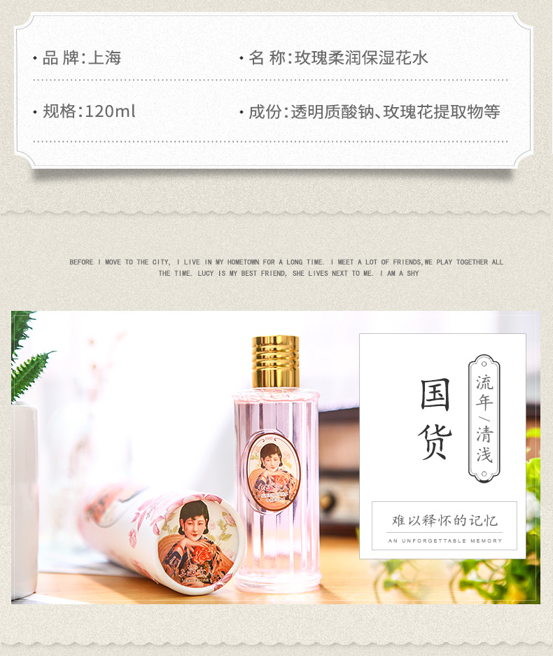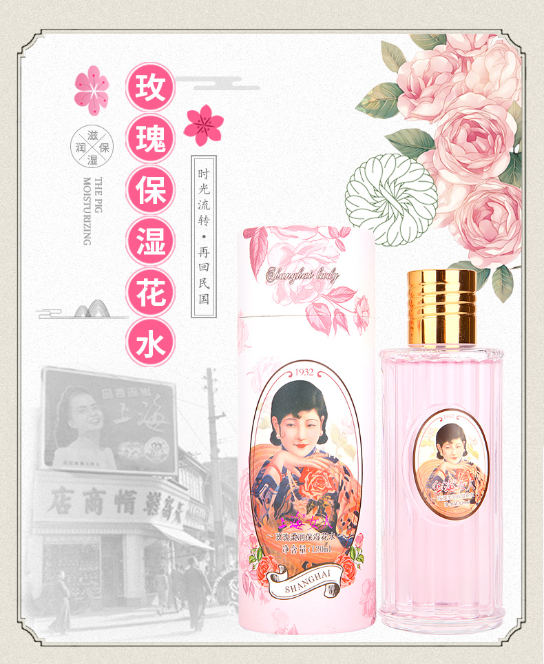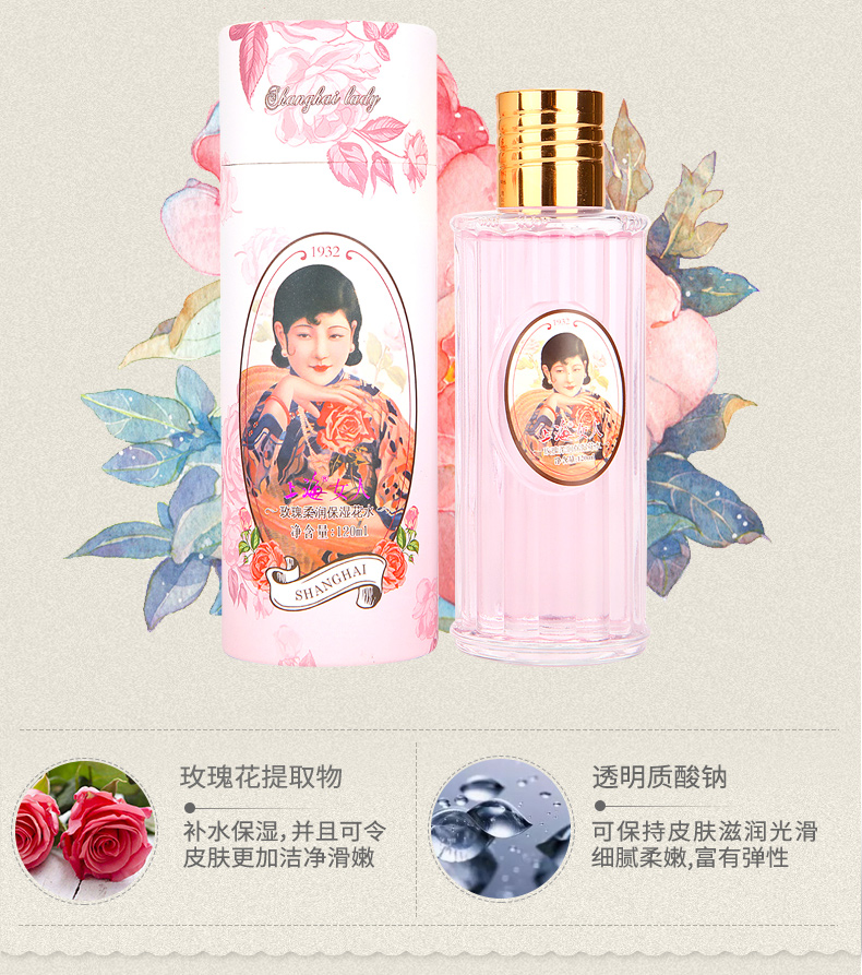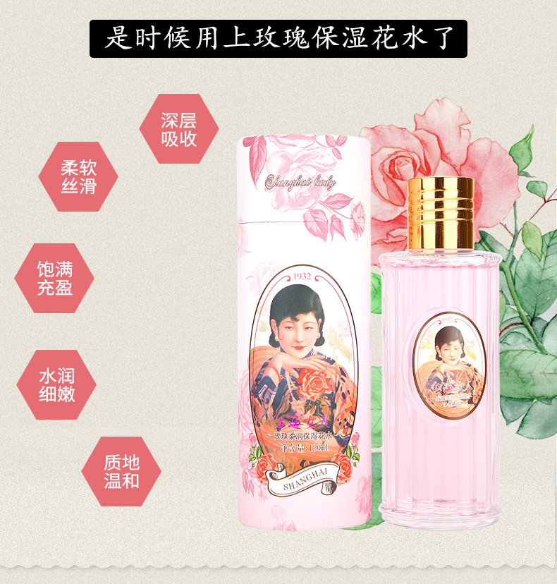 上海女人玫瑰柔润保湿花水120g