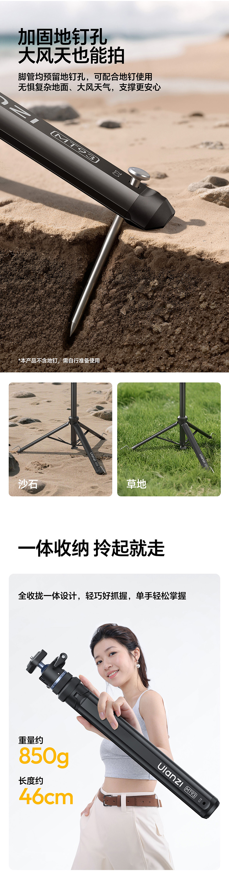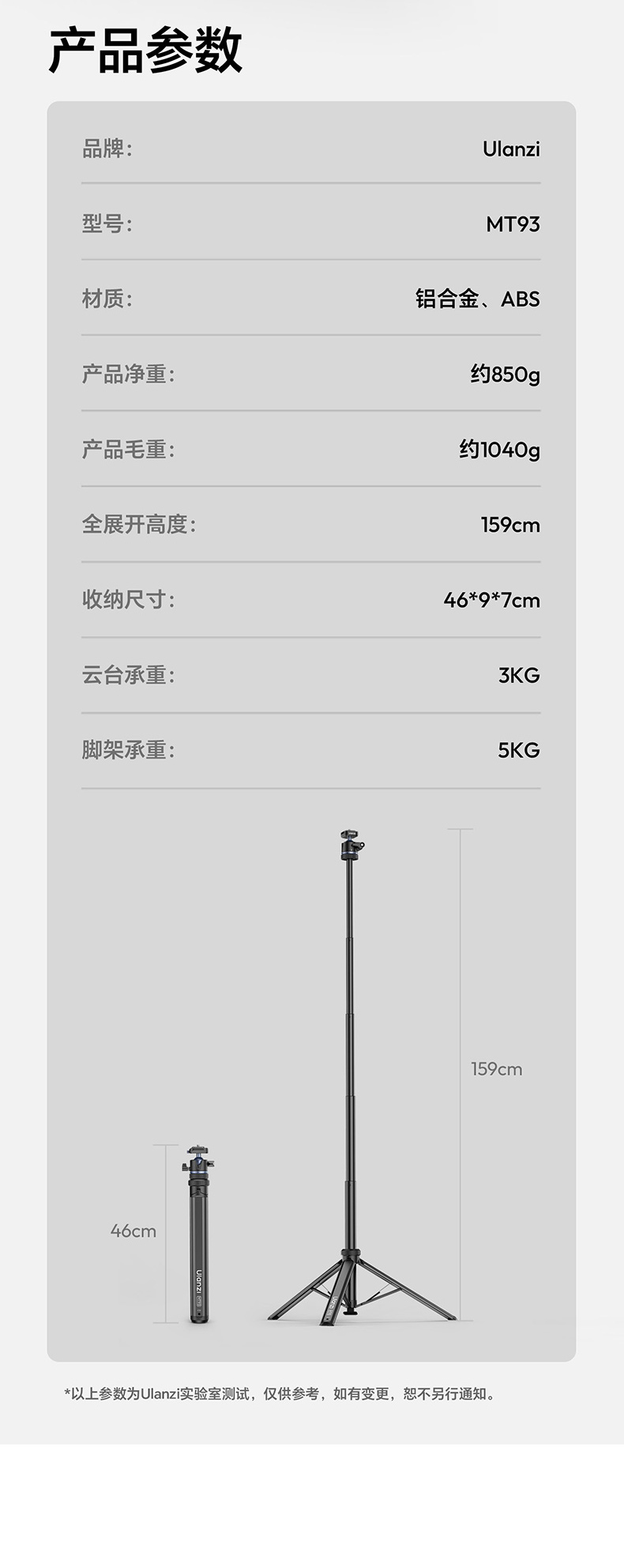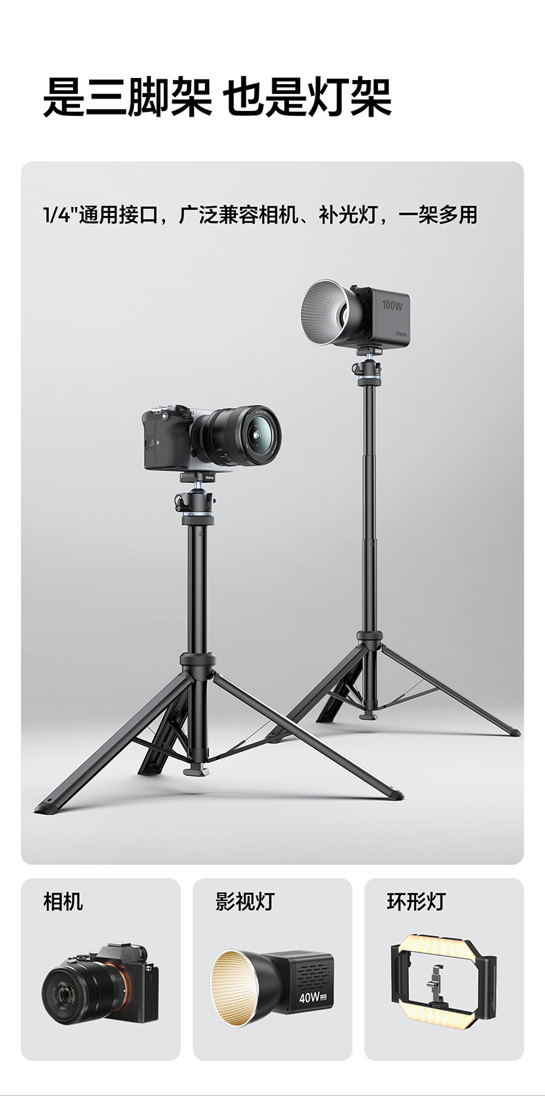 Ulanzi优篮子 MT93一键打开脚架微单反相机摄影摄像落地三脚支架户外直播拍照补光便携灯架Uka快速拆装支撑架